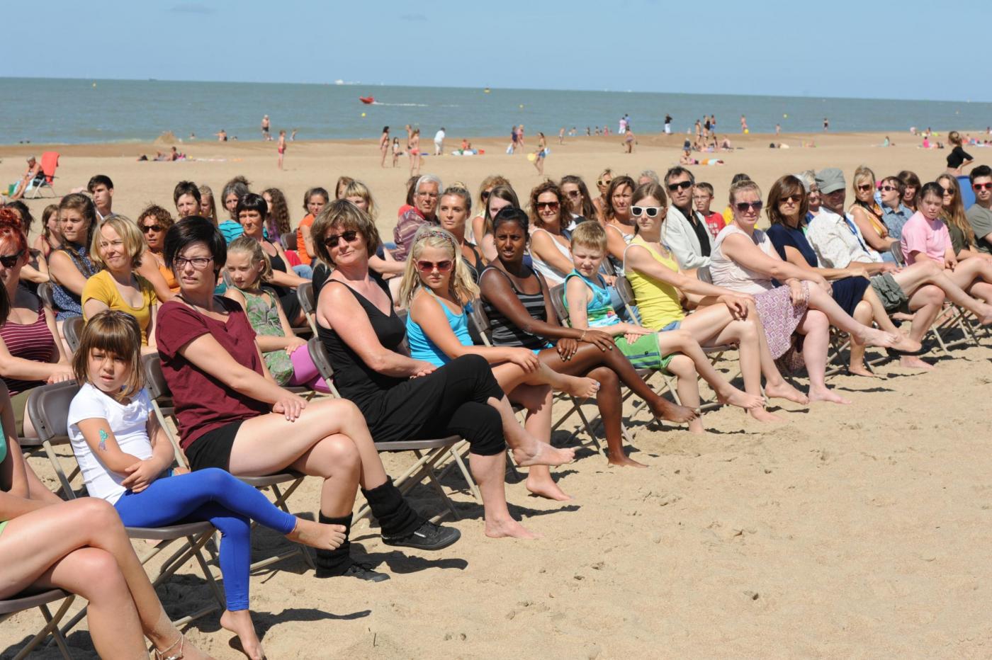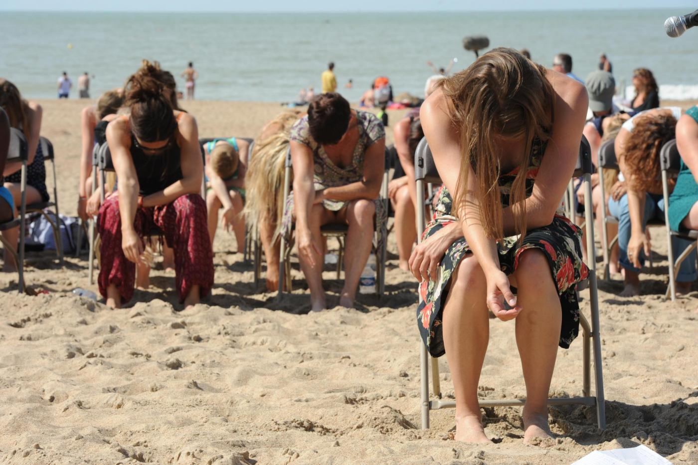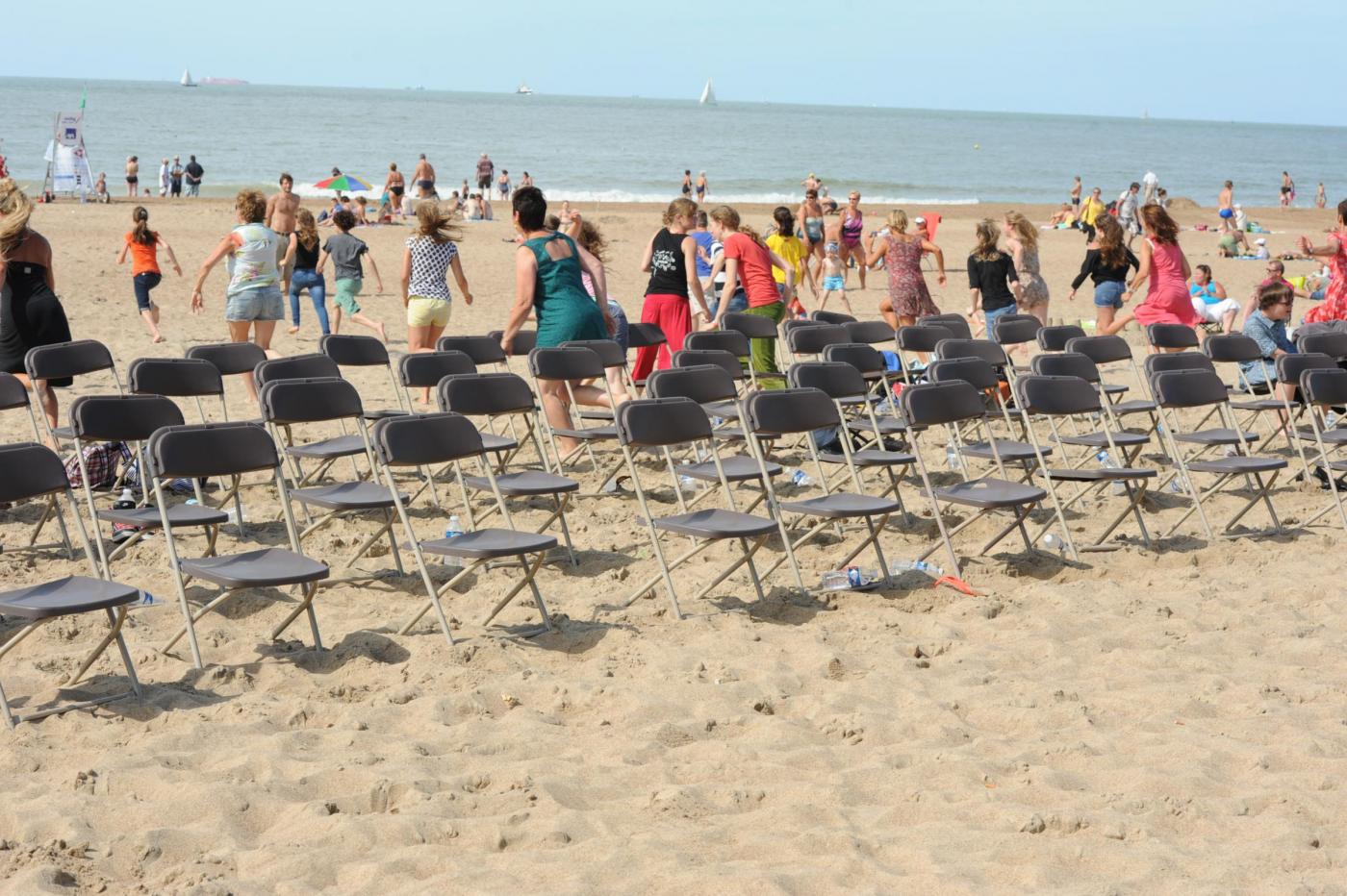 Ostend, Belgium, August 8, 2013. At the theaterfestival 'Theater aan Zee' choreographer and dancer Yentl de Werdt and 100 people gave a performance on the beach of 'Rosas dances Rosas' which was created 30 years ago. The participants were not dancers and learned the routine in an hour. The unique performace attracted many viewers. REPORTERS/Edwin Fontaine LaPresse Only Italy