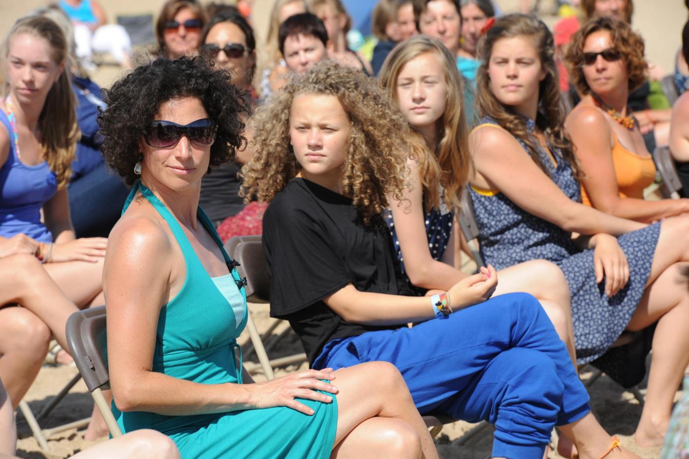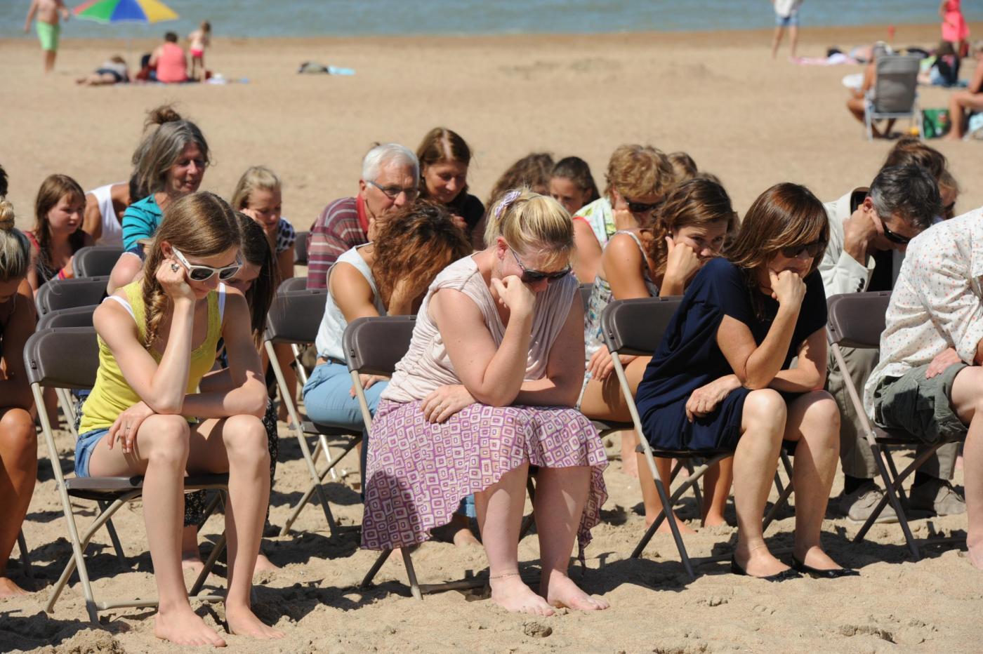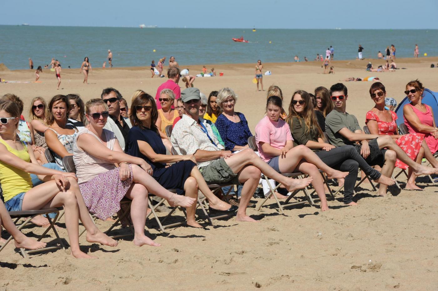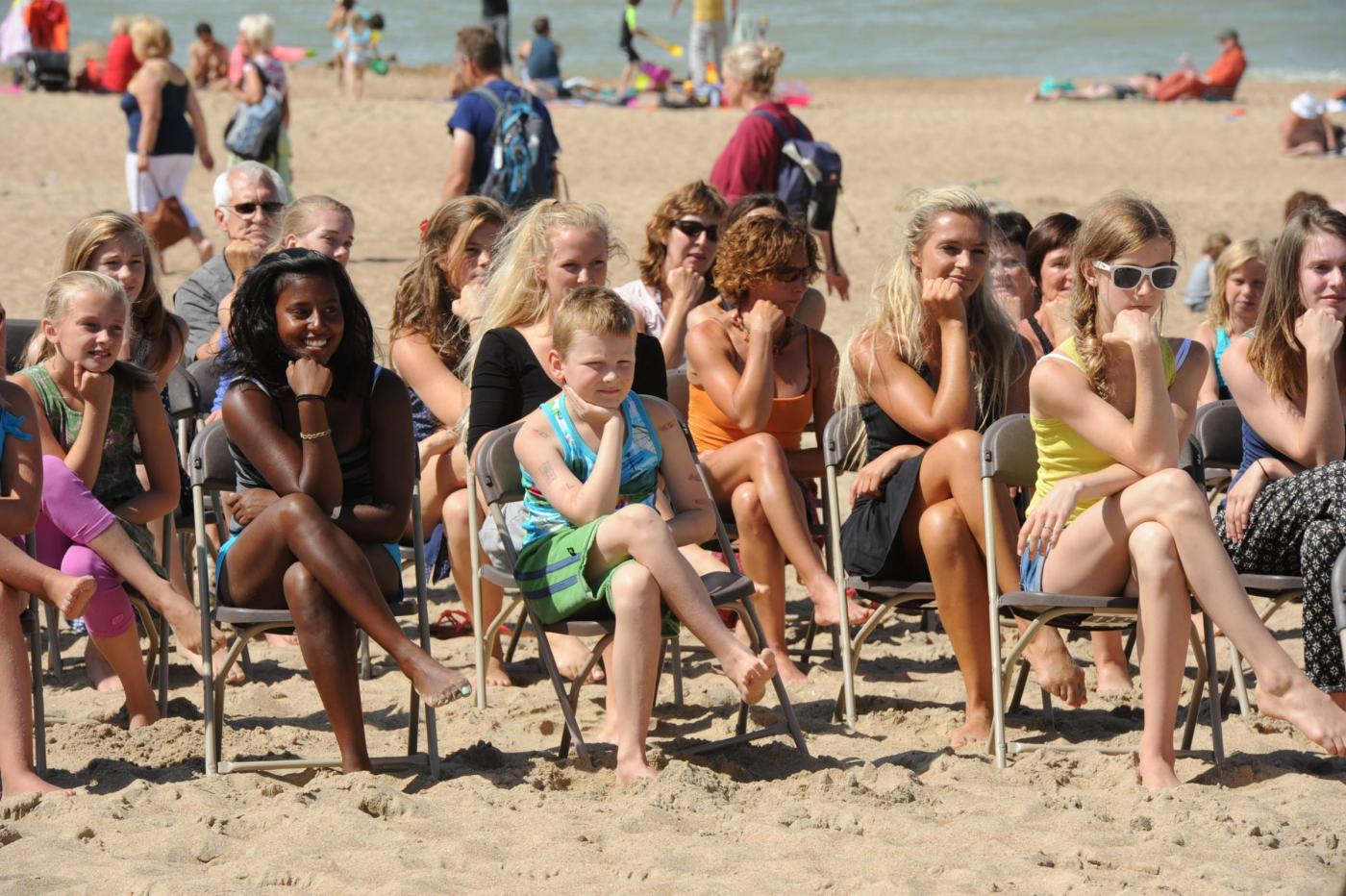 Ostend, Belgium, August 8, 2013. At the theaterfestival 'Theater aan Zee' choreographer and dancer Yentl de Werdt and 100 people gave a performance on the beach of 'Rosas dances Rosas' which was created 30 years ago. The participants were not dancers and learned the routine in an hour. The unique performace attracted many viewers. REPORTERS/Edwin Fontaine LaPresse Only Italy