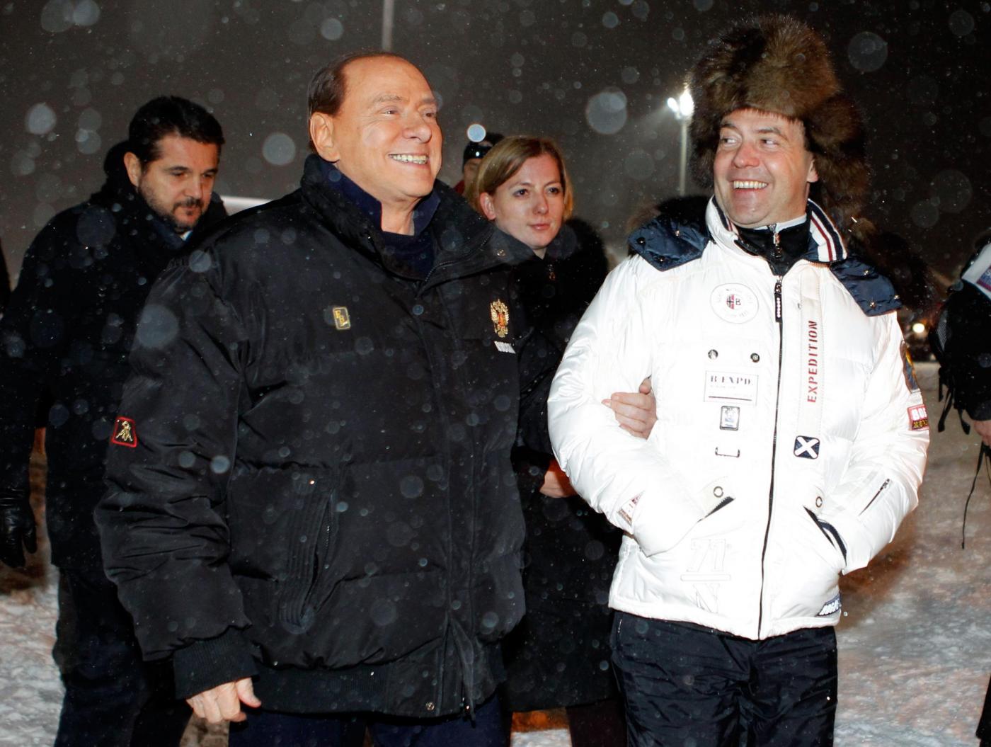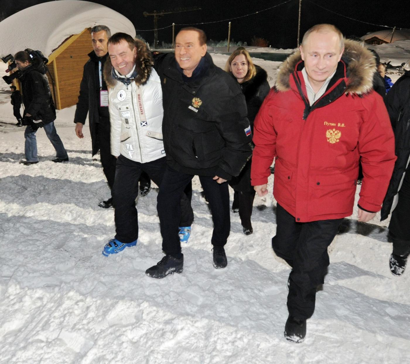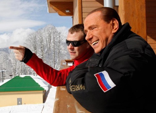 MOSCA – Silvio Berlusconi in visita privata dall’amico Vladimir Putin per congratularsi della sua rielezione al Cremlino: dopo l’arrivo con un grande gatto delle nevi giallo sulle piste da sci di Krasnaia Poliana, dove si disputeranno le Olimpiadi invernali del 2014, un sorridente Cavaliere ha stretto la mano e abbracciato sia a Putin sia al presidente uscente Dmitri Medvedev.