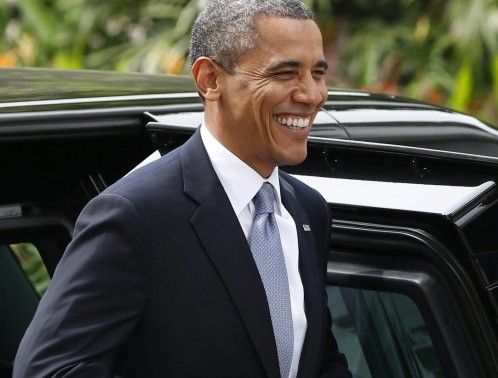 epa03477663 US President Barack Obama buttons up his suit jacket and smiles as he arrrives and sees Myanmar opposition leader Aung San Suu Kyi, for a meeting at her house, in Yangon, Myanmar, 19 November 2012. Obama is the first US president to visit Myanmar and comes as it moves towards greater liberalisation and freedoms for its citizens after its first general election in two decades. EPA/BARBARA WALTON