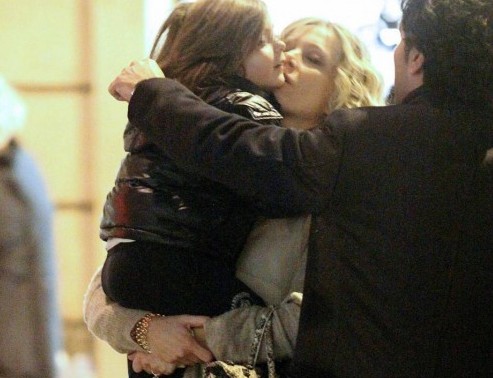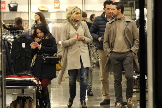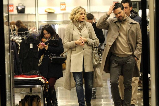 La coppia fa shopping in giro per il centro e la bionda showgirl riempie di coccole il piccolo (LaPresse)