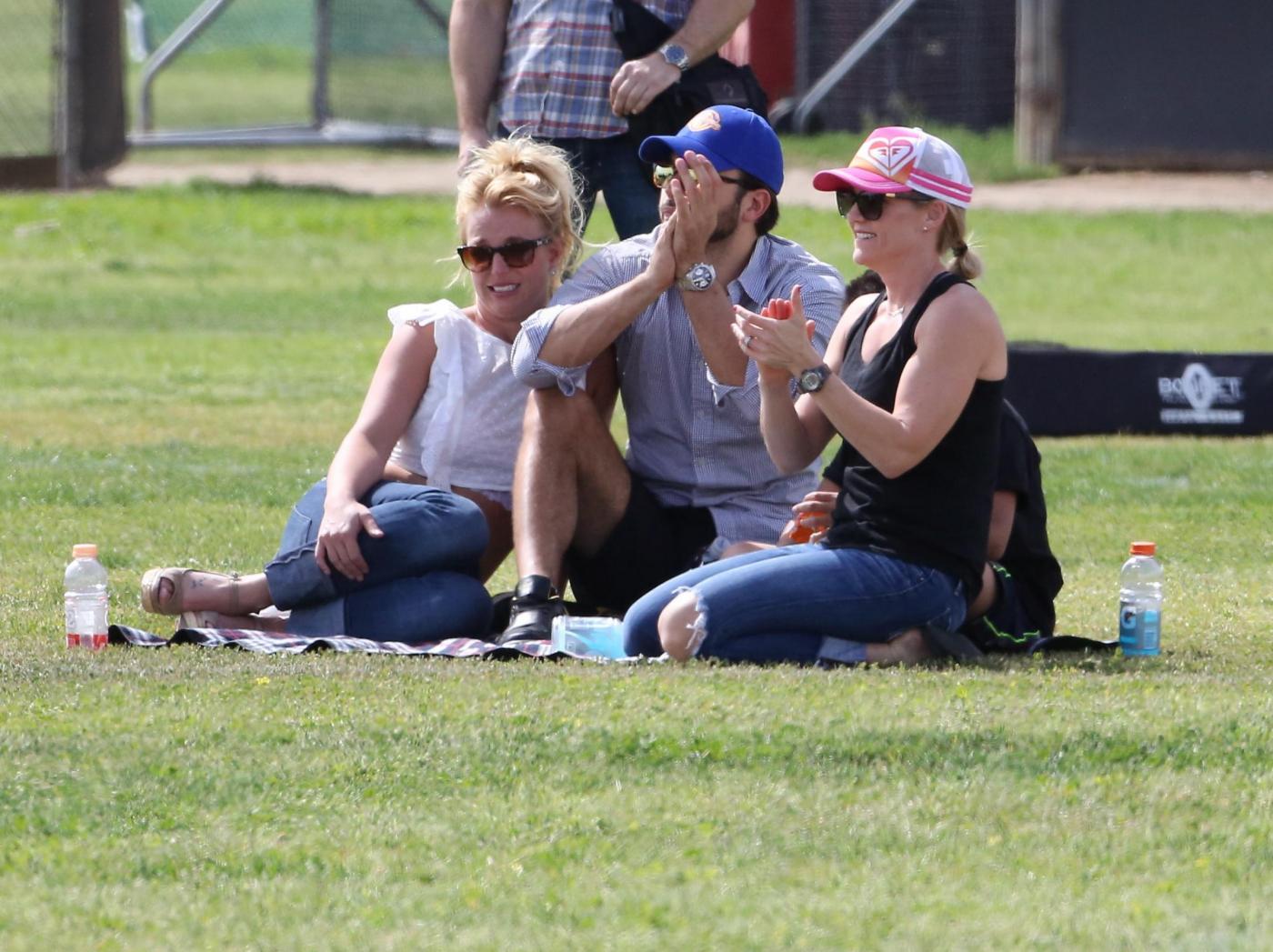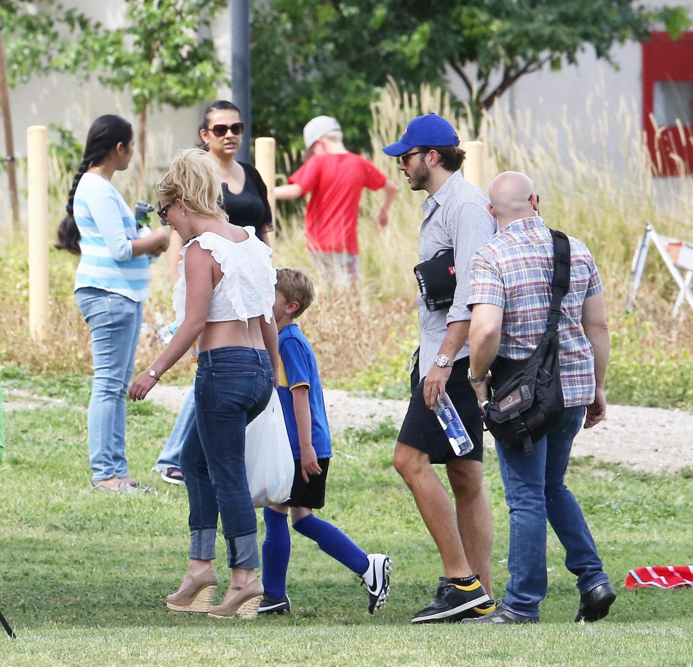 LOS ANELES – Britney Spears al parco con i figli e Charlie Ebersol, il suo nuovo fidanzato. Charlie di professione fa il produttore televisivo e sembrano molto affiatati. Le immagini sono state scattate durante una partita di calcio di Jayden, il figlio di lei, che si è svolta in un parco di Los Angeles. Presto le nozze tra i due? Britney a questa domanda risponde spiegando di starci a pensare pur non essendo il matrimonio “una priorità”.