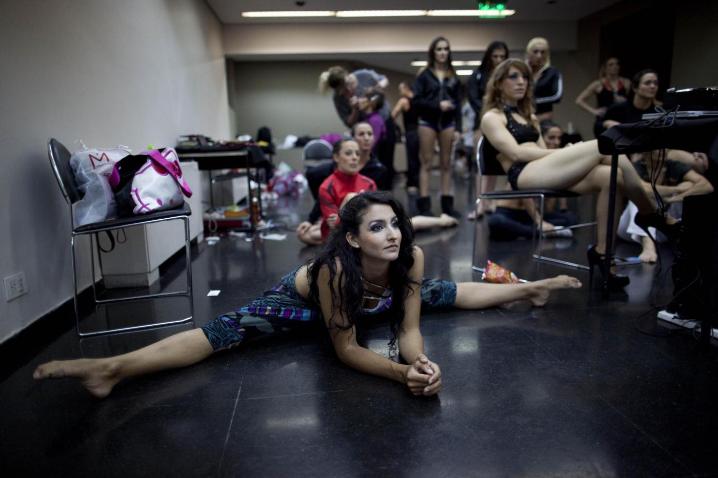 Participants of the Miss Pole Dance South America 2012 and Pole Dance Argentina 2012 watch in backstage the performance of fellow competitors in Buenos Aires, Argentina, Monday, Nov. 26, 2012. LaPresse27-11-2012 Buenos AiresEsteriArgentina, campionato di Miss Pole Dance Sud America 2012