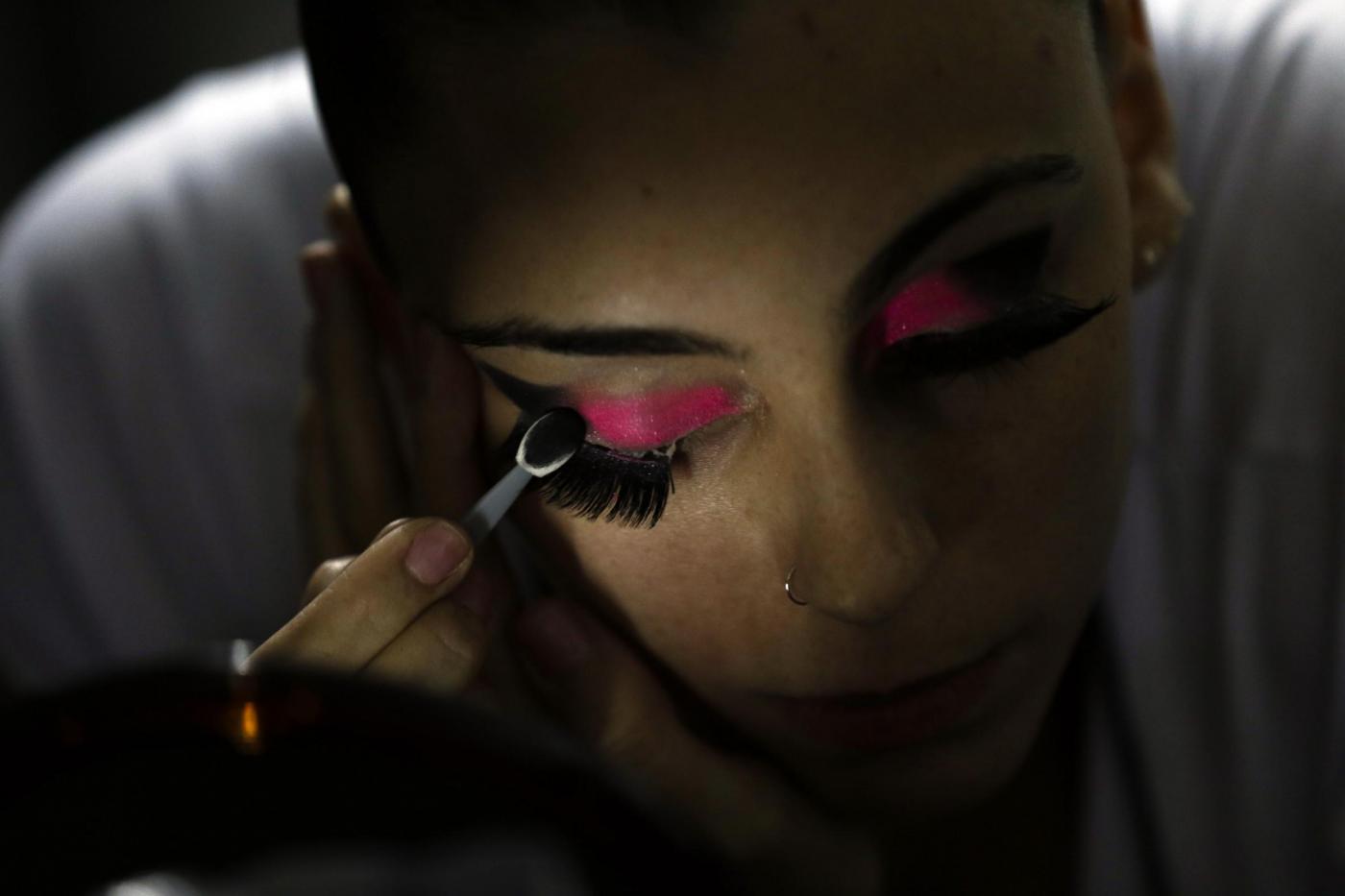 Pole dancer Alessandra Ranca, of Brazil, applies make up before competing in the Miss Pole Dance South America 2012 in Buenos Aires, Argentina, Monday, Nov. 26, 2012. LaPresse27-11-2012 Buenos AiresEsteriArgentina, campionato di Miss Pole Dance Sud America 2012