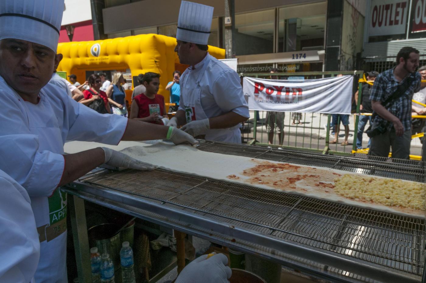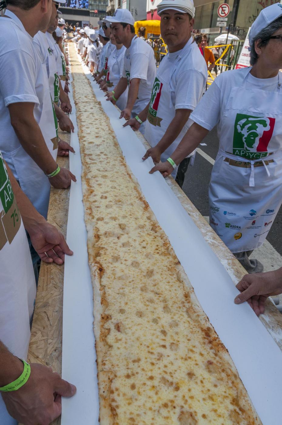 BUENOS AIRES – I pizzaioli della Appyce, l’associazione che a Buenos Aires raccoglie sia i proprietari delle pizzerie, sia i lavoratori, hanno preparato una pizza lunga 50 metri e l’hanno venduta in strada.