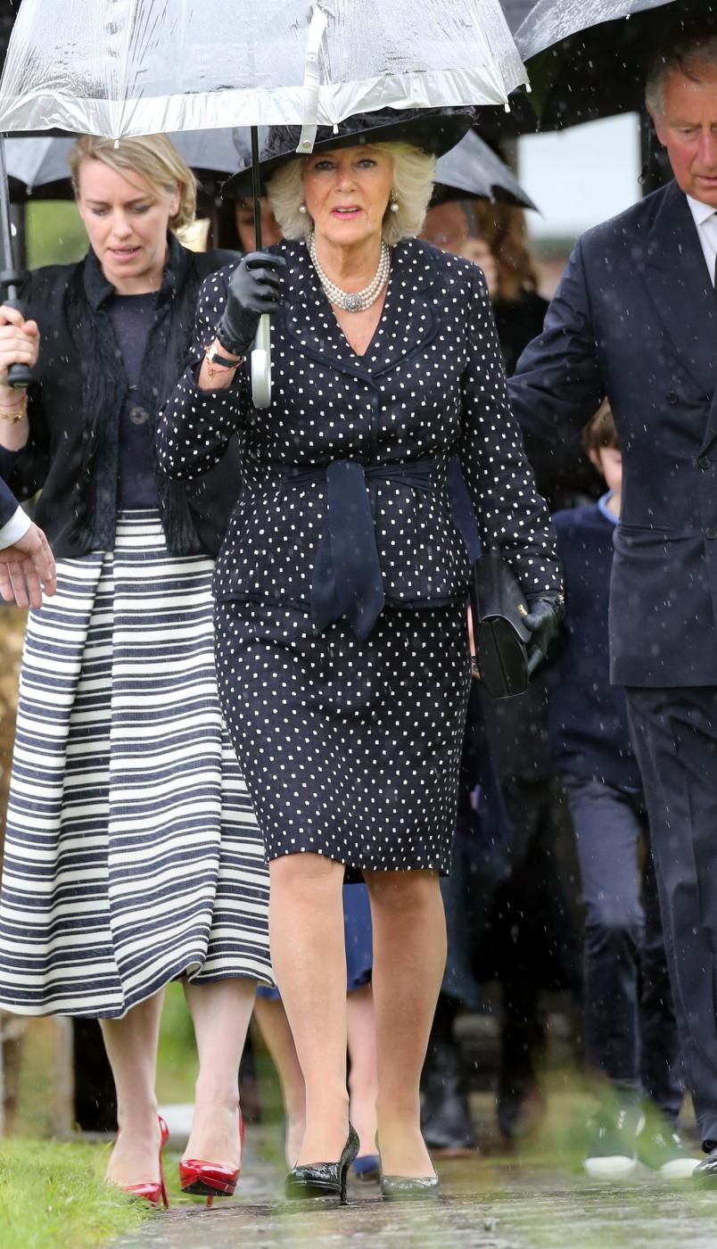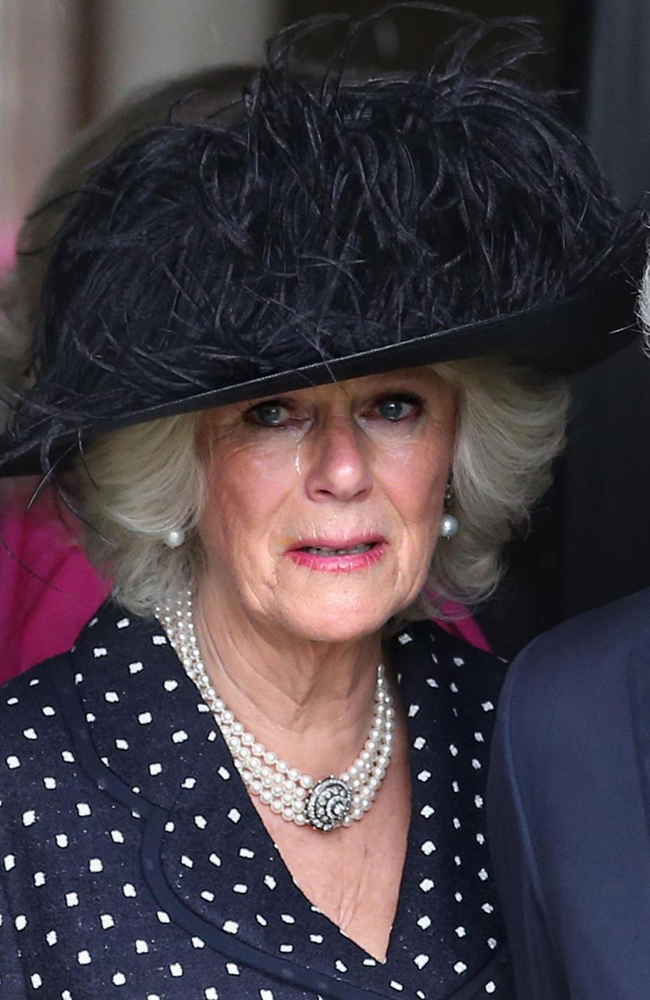 La duchessa di Cornovaglia, durante la cerimonia ufficiata in forma privata alla Holy Trinity Church, di Stourpaine, nel Dorset dove risiede la sorella Annabel Elliot, non è riuscita a trattenere le lacrime.