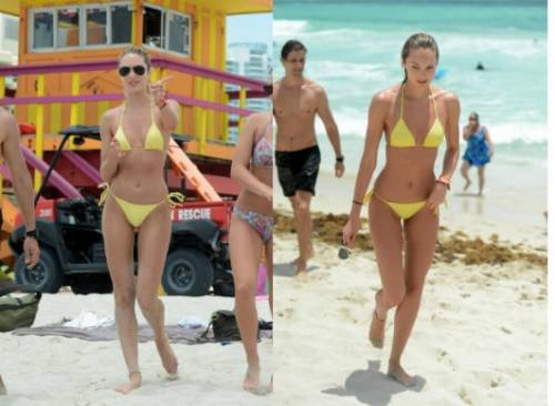 E invece Candice mostra un fisico mozzafiato e delle curve sensuali, con un bikini giallo e tanto, tanto fascino, l’angelo sexy di Victoria’s Secret si rilassa sulla spiaggia e gioca con le onde del mare.