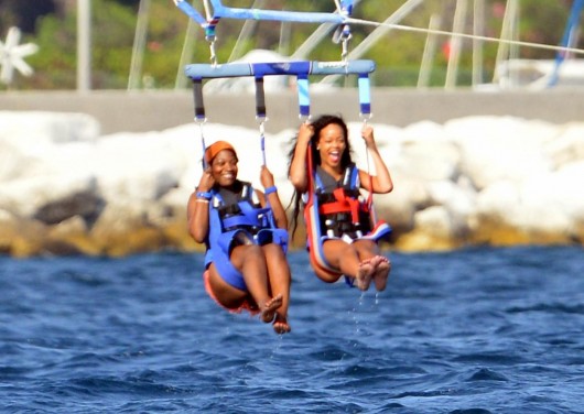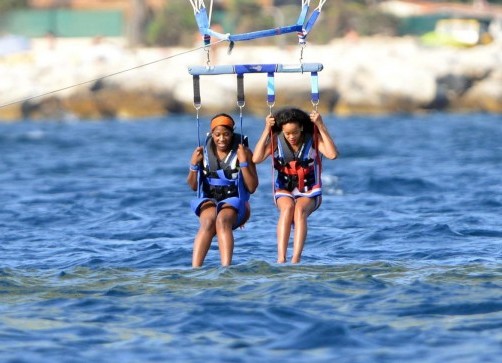 Foto LaPresseRihanna Takes To The Skies In Cannes, France, on July 24, 2012. Carrying on her carefree vacation, Rihanna and a gal pal flew over the ocean on a parachute connected to a motorboat in the sea below.