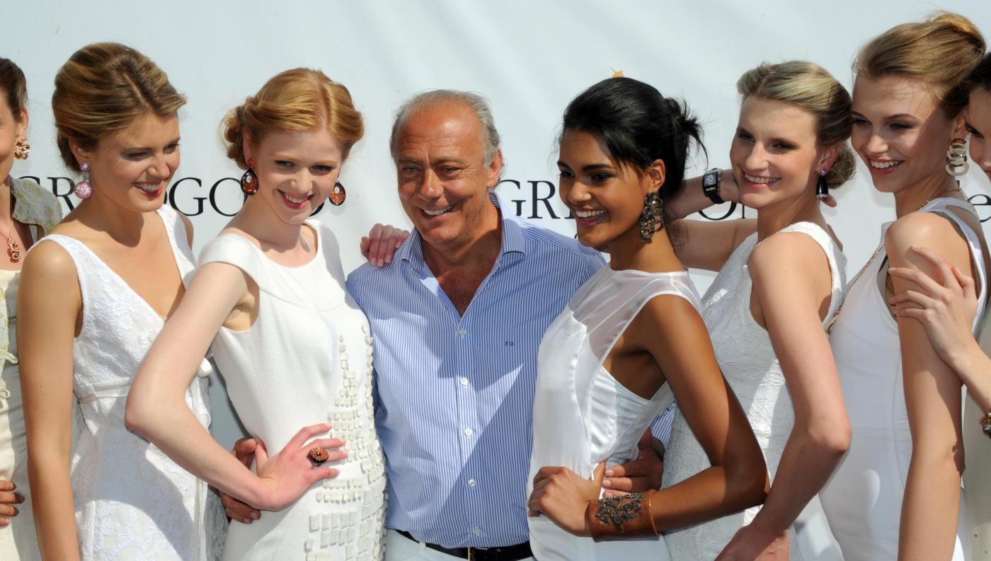 Per rendere omaggio al marchio le cui creazioni sono state indossate alla cerimonia di inaugurazione anche da Zhang Ziyi, la famosa interprete de “La Tigre e il Dragone” e de “La Foresta dei Pugnali Volanti”, alcune modelle hanno posato con delle creazioni fatte appositamente per l’evento, sulla croisette del festival insieme a Fawaz Gruosi, il fondatore della maison svizzera (foto LaPresse)