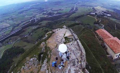 Un cannolo nello spazio. L'impresa, il cui video sta spopolando su Youtube, è di un gruppo di ragazzi ennesi che hanno deciso di fare concorrenza ai tecnici della Nasa utilizzando come testimonial uno dei simboli più noti del made in Sicily. L'originale iniziativa è stata messa a punto da due filmaker, Antonella Barbera e Fabio Leone, che insieme all' informatico con la passione per l'elettrotecnica Paolo Capasso hanno lavorato al progetto. Il cannolo è stato posizionato su un pallone sonda, riempito di elio e dotato di una microcamera per documentare il successo dell'impresa. Il lancio, autorizzato con una richiesta al 41/o Stormo di Sigonella, è avvenuto il 2 febbraio scorso nonostante le avverse condizioni meteo. ANSA/UFFICIO STAMPA +++EDITORIAL USE ONLY - NO SALES+++