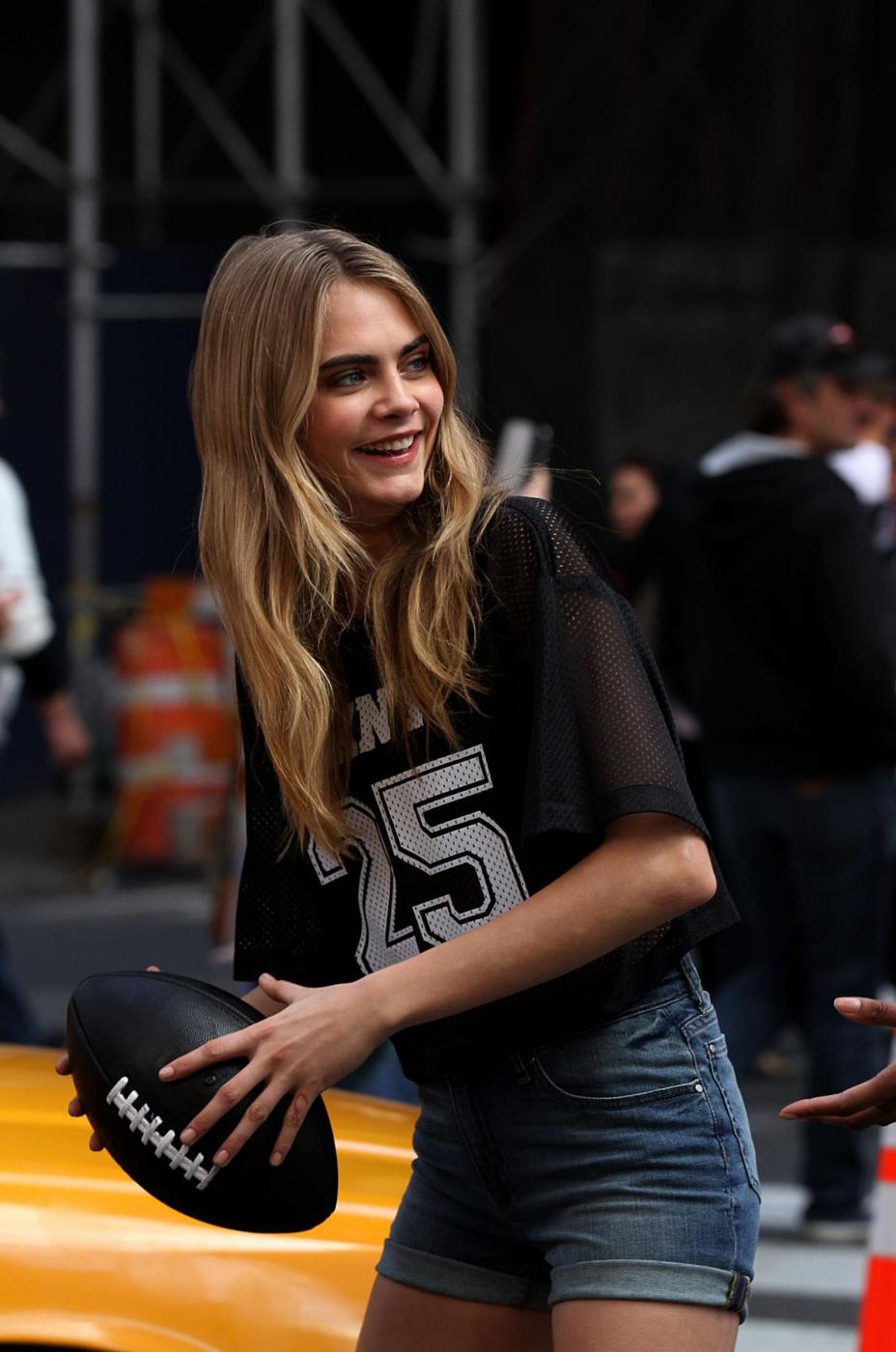 Contesa tra gli stilisti, questa volta ha avuto la meglio Dkny, che ha ingaggiato Cara per un servizio fotografico nella Grande Mela. La modella, nelle immagini del servizio, si diverte a posare come fosse una giocatrice di football americano.