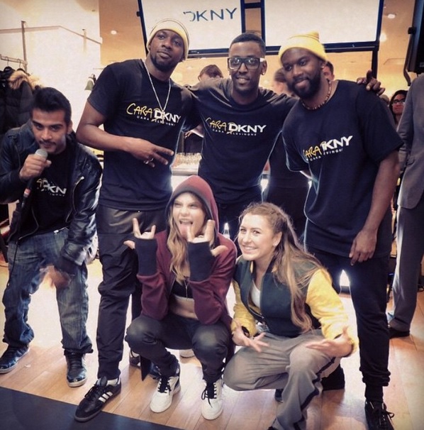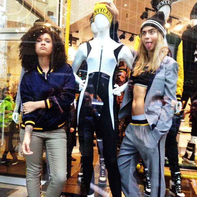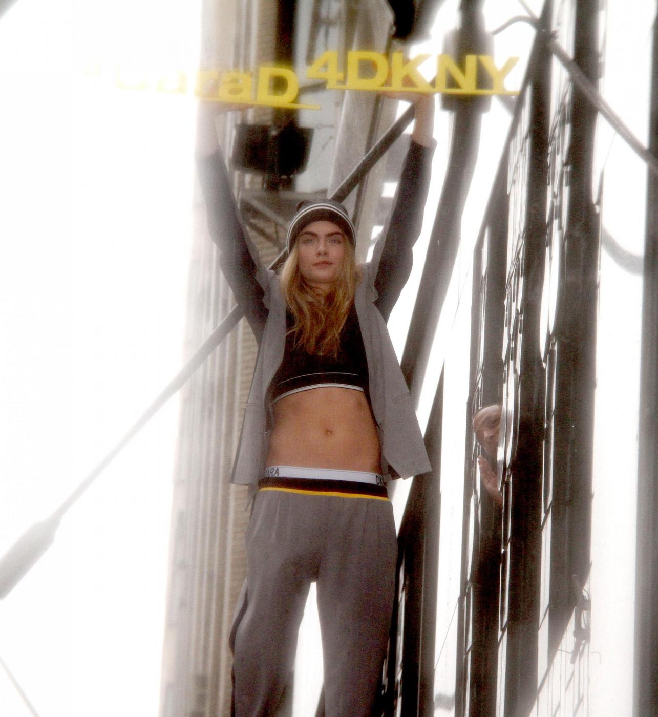Per lanciare la sua linea la Delevingne è salita sul tetto di Bloomingdale sulla 59esima strada di New York, indossando i suoi capi: una tuta morbida con crop top e cuffia con il brand della collezione.