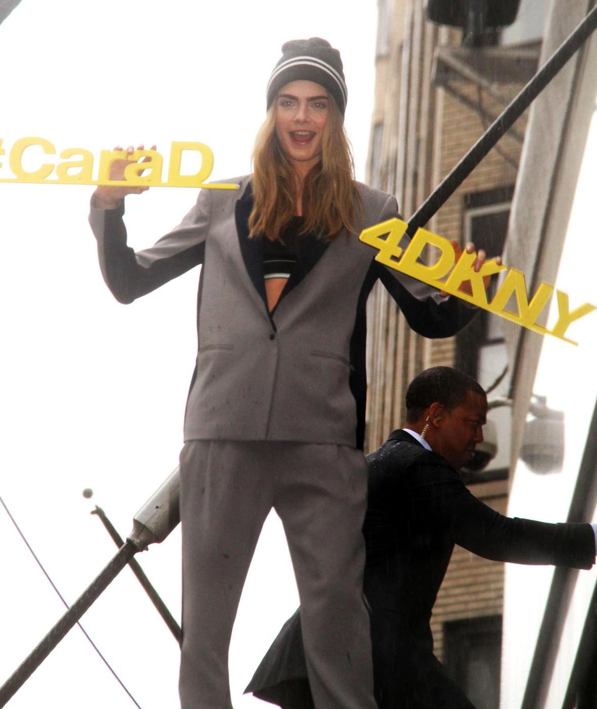 Foto: La PresseOct. 10, 2014 - New York, New York, U.S. - Model CARA DELEVINGNE poses in the pouring rain to promote the launch of 'Cara D For DKNY' capsule collection at Bloomingdale's 59th Street. (Credit Image: © Nancy Kaszerman/ZUMA Wire)