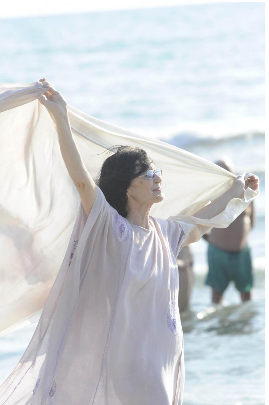 All’età di 76 anni si delizia fra bagni, doccia, giochi con il nipote e si cambia d’abito più volte indossando morbide tuniche di lino bianco con cui si diverte a “ballare” sulla riva del mare facendo muovere la tunica dal vento.