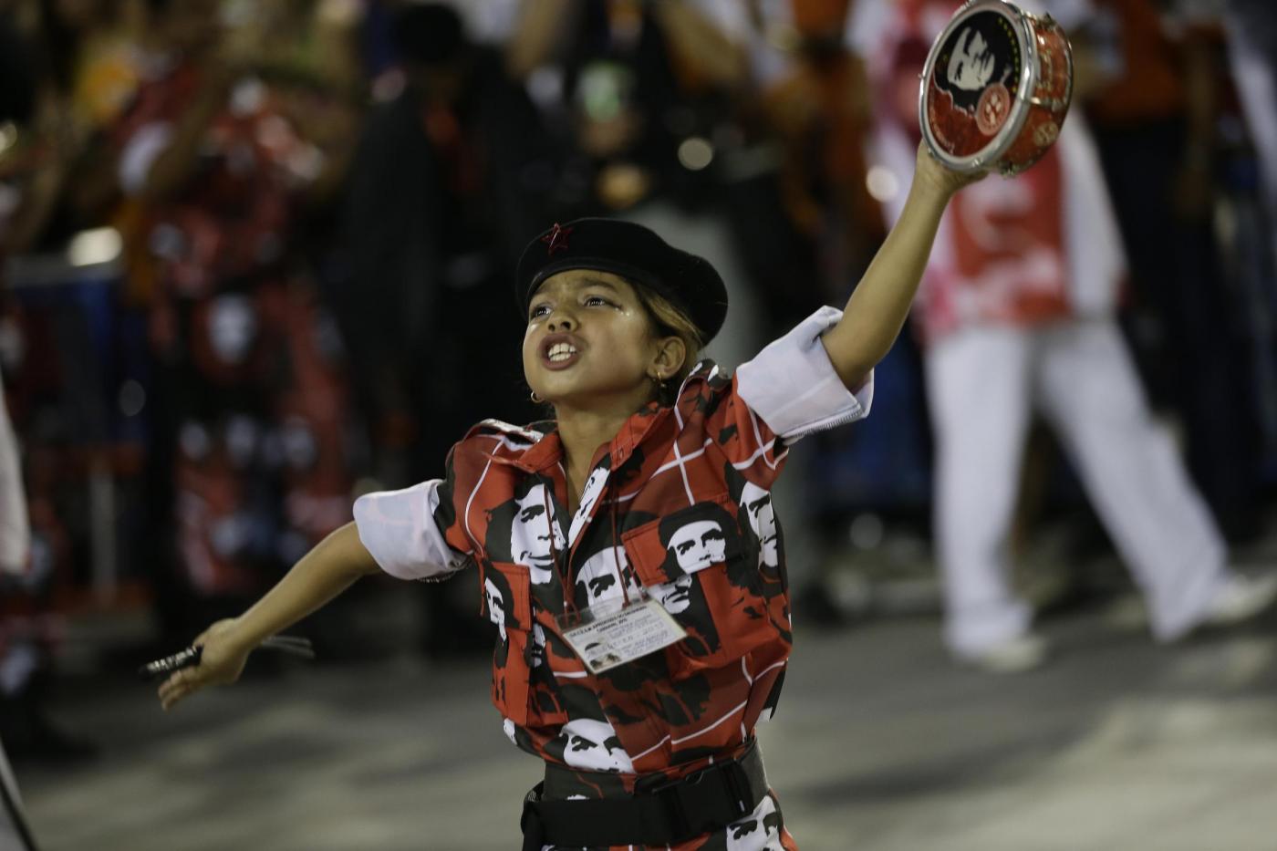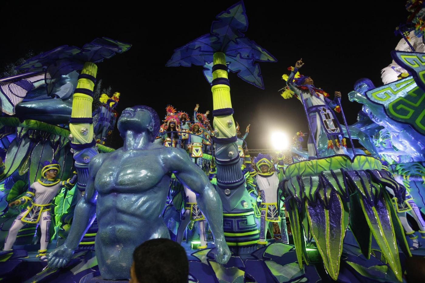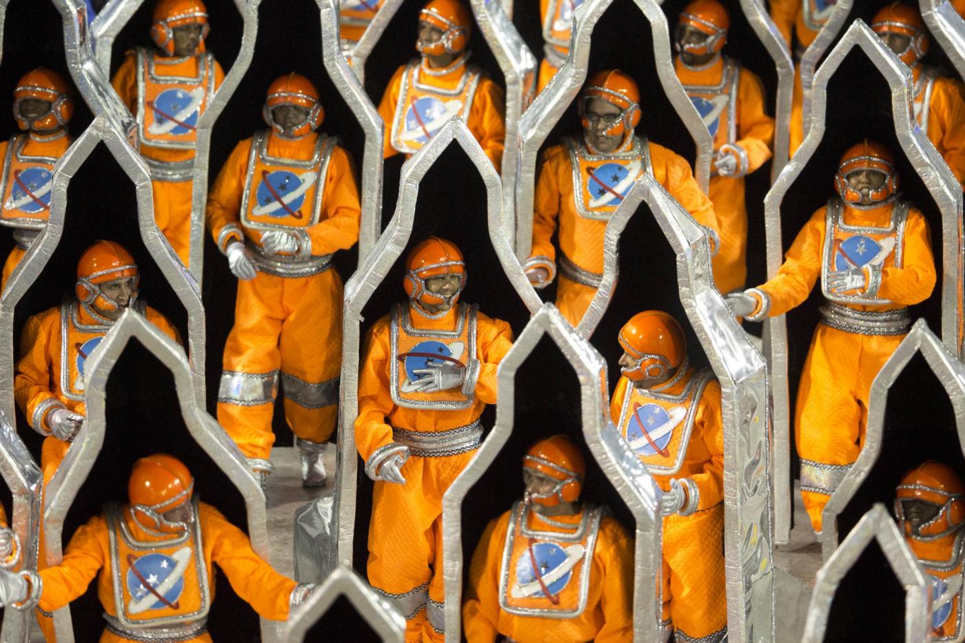 Performers from the Mocidade Independente de Padre Miguel samba school participate in the carnival celebrations at the Sambadrome in Rio de Janeiro, Monday, Feb. 11, 2013. (AP Photo/Hassan Ammar)