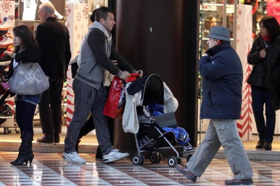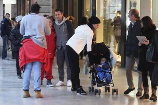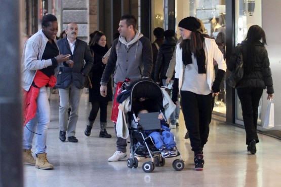 I due sono stati fotografati insieme al piccolo Christopher in Corso Vittorio Emanuele: il calciatore barese è stato fermato più volte dai tifosi che gli hanno chiesto autografi e foto insieme (foto LaPresse)