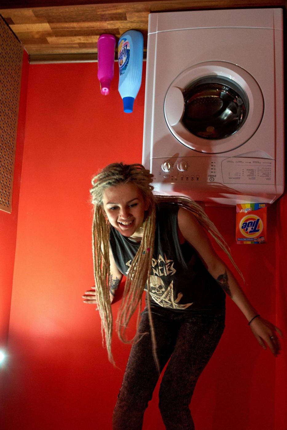 La casa comprende tutto, compreso un soggiorno arredato, una cucina completamente attrezzata e un piccolo bagno. Più che un ambiente capovolto però, la casa assomiglia ad un parco giochi che consente ai visitatori di interagire con gli oggetti presenti (foto Ap/LaPresse)