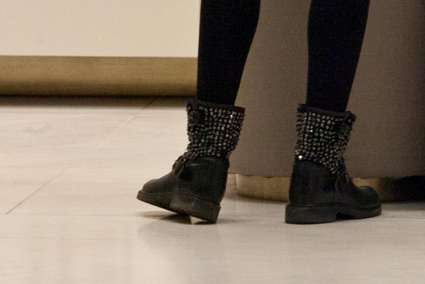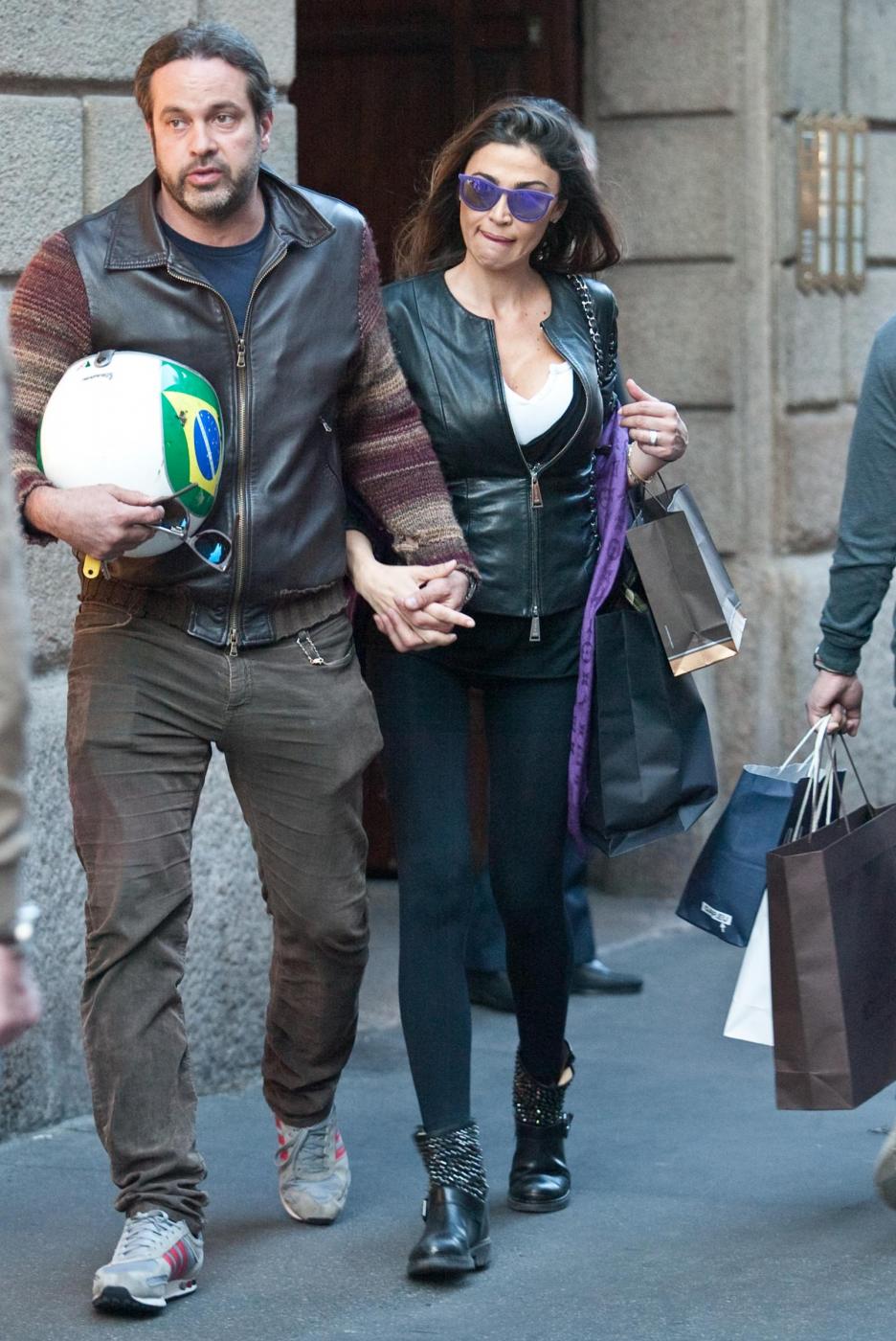 La showgirl, appena tornata su Canale 5 all’inizio di quest’anno con una parte nella fiction ‘I segreti di Borgo Larici’, è arrivata indossando un casco jet con i colori della bandiera italiana, a bordo di una Vespa insieme al compagno Gianluca Mobilia. Una volta scesa dallo scooter, la showgirl si è provata un paio di biker bassi con piccole borchie argentate. Stivaletti che devono esserle piaciuti, visto che è uscita con una busta nera in mano (foto LaPresse)