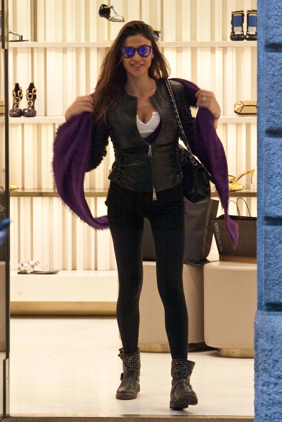 MILANO – Con la cerniera della giacca di pelle abbassata quanto basta per offrire uno scorcio su un generoso décolleté, Cecilia Capriotti si è concessa un pomeriggio di shopping in via Montenapoleone a Milano.