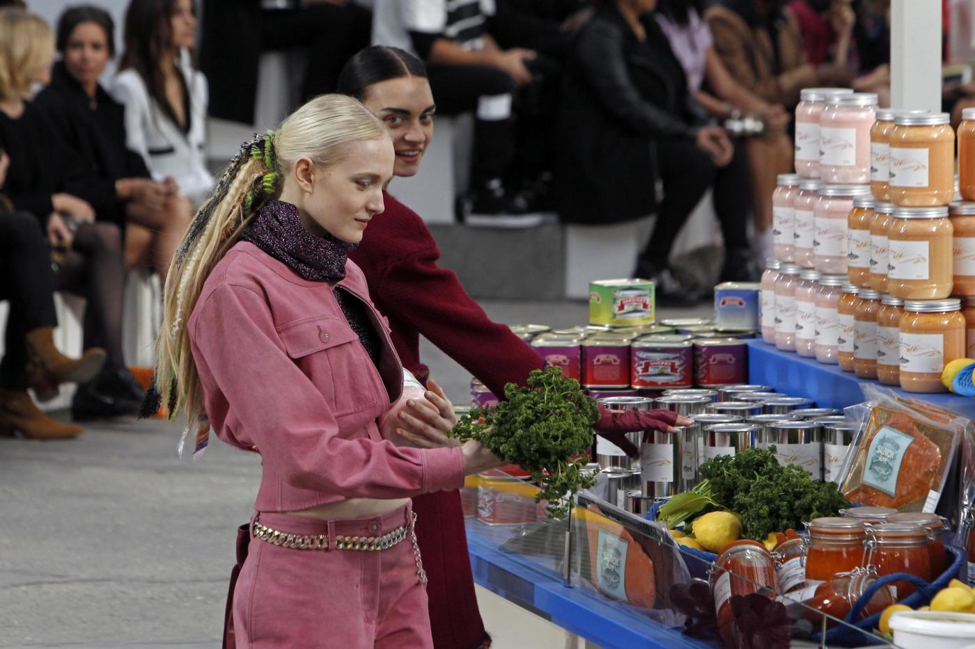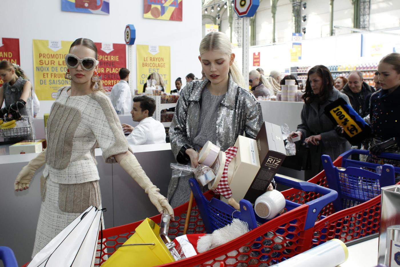 Questa volta il Gran Palais di Parigi è diventato un gigantesco centro commerciale, ovviamente superchic. Tra le corsie del market si è snodata la sfilata. Le modelle non hanno solo camminato ma hanno interagito con la scenografia guardando e toccando gli oggetti esposti e reggendo pacchi e borse della spesa. Il tutto nella suggestione che si può essere alla moda e sempre eleganti anche quando si va al supermercato. E’ stata la gettonatissima modella, protagonista delle passerelle francesi, Cara Delevingne, ad accompagnare nell’ultima uscita lo stilista che ha raccolto calorosi applausi.
