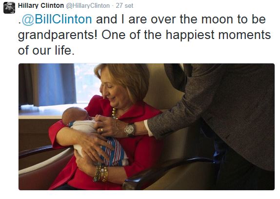 Anche nonna Hillary ha condiviso la sua gioia attraverso Twitter: “Bill e io – scrive la Clinton – ci sentiamo sopra la luna per essere diventati nonni. Uno dei momenti più felici della nostra vita”.