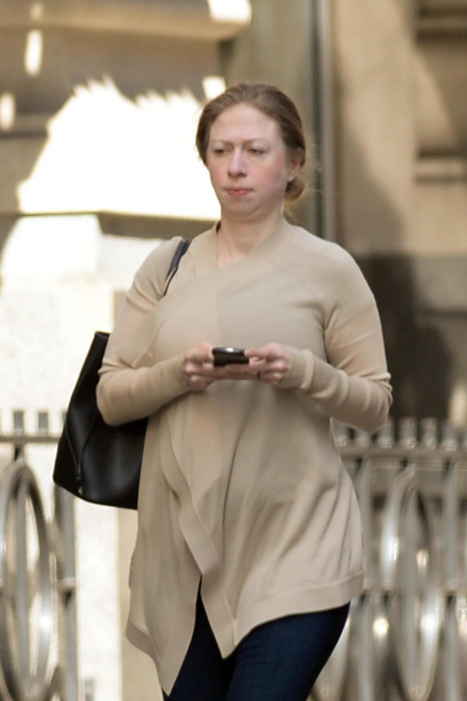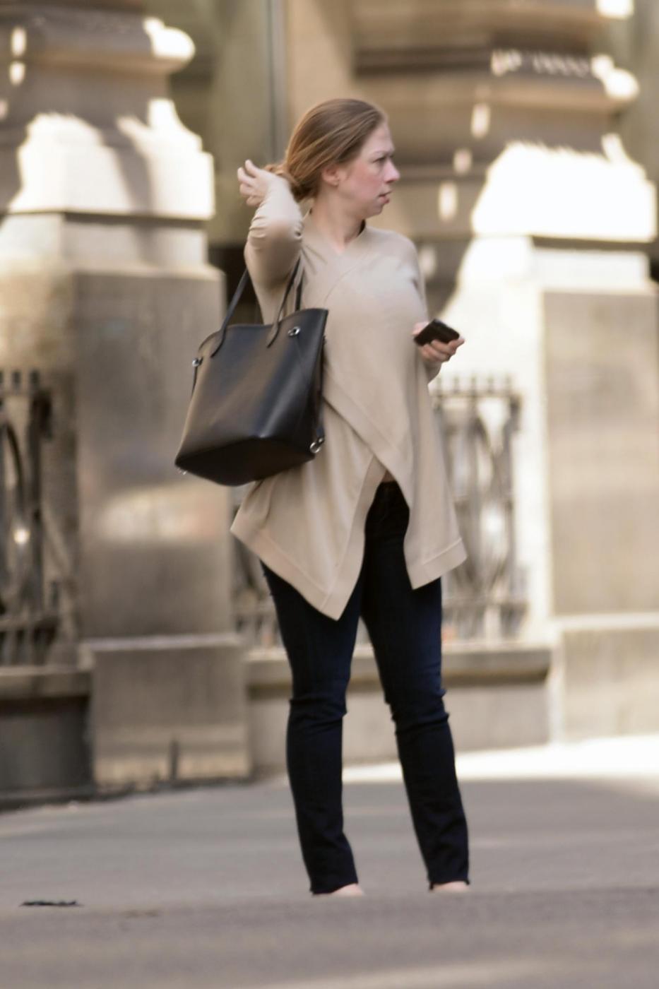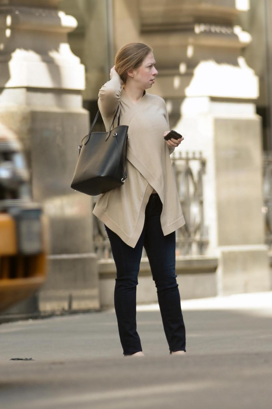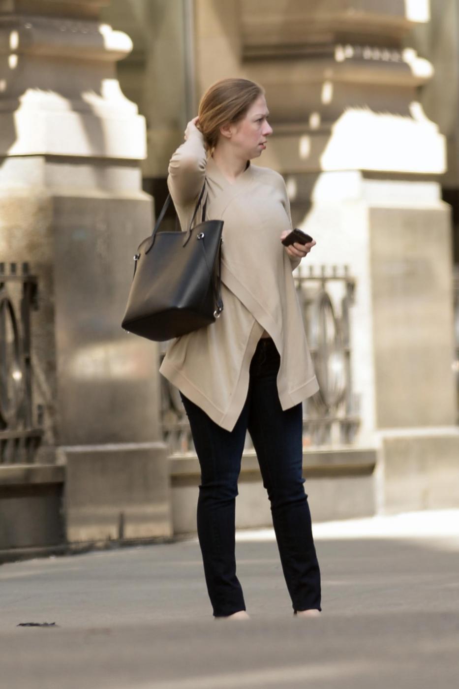 Chelsea Clinton photographed this morning showing her belly while heading to have breakfast in the Flatiron District of New York City. Chelsea just announced that she is expecting her first baby. Elder Ordonez/INFphoto.LaPresse -- Only Italy