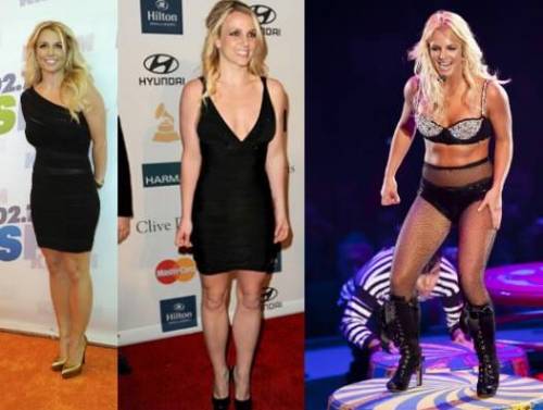 Britney Spears, a sinistra, in due foto degli ultimi mesi. A destra nel 2009, decisamente più "massiccia"Britney Spears, a sinistra, in due foto degli ultimi mesi. A destra nel 2009, decisamente più "massiccia"