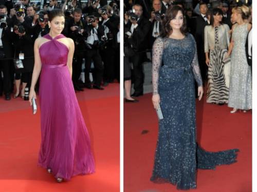 Aishwarya Rai a sinistra in una foto del 2009, a destra nel 2012. La stampa indiana l'ha denigrata molto a causa del suo aumento di pesoAishwarya Rai a sinistra in una foto del 2009, a destra nel 2012. La stampa indiana l'ha denigrata molto a causa del suo aumento di peso