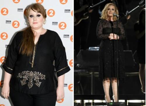 Adele, a sinistra nel 2008 e a destra nel 2012. La cantante ha perso un bel po' di chiliAdele, a sinistra nel 2008 e a destra nel 2012. La cantante ha perso un bel po' di chili