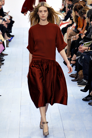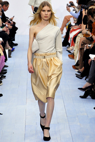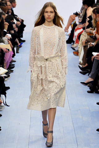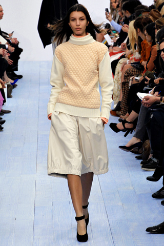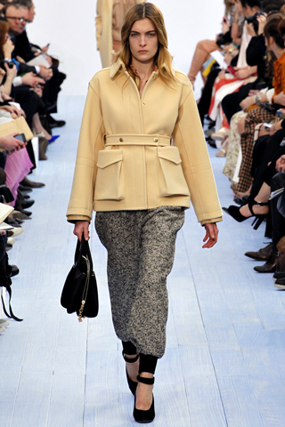 PARIGI- La sesta giornata della Paris Fashion Week ha visto sfilare, tra le altre, la collezione a\i 2012-13 di Chloè. Il carattere molto femminile e delicato della griffe è stato esaltato anche questa volta, con una collezione all’insegna dei delicati colori pastello e delle linee morbide. In quasi tutti gli abbinamenti (fatta eccezione per la presenza di un rosso fuoco) vengono combinati il pesca, il beige, il panna, il turchese, l’azzurro, e tutte le sfumature di questi colori.