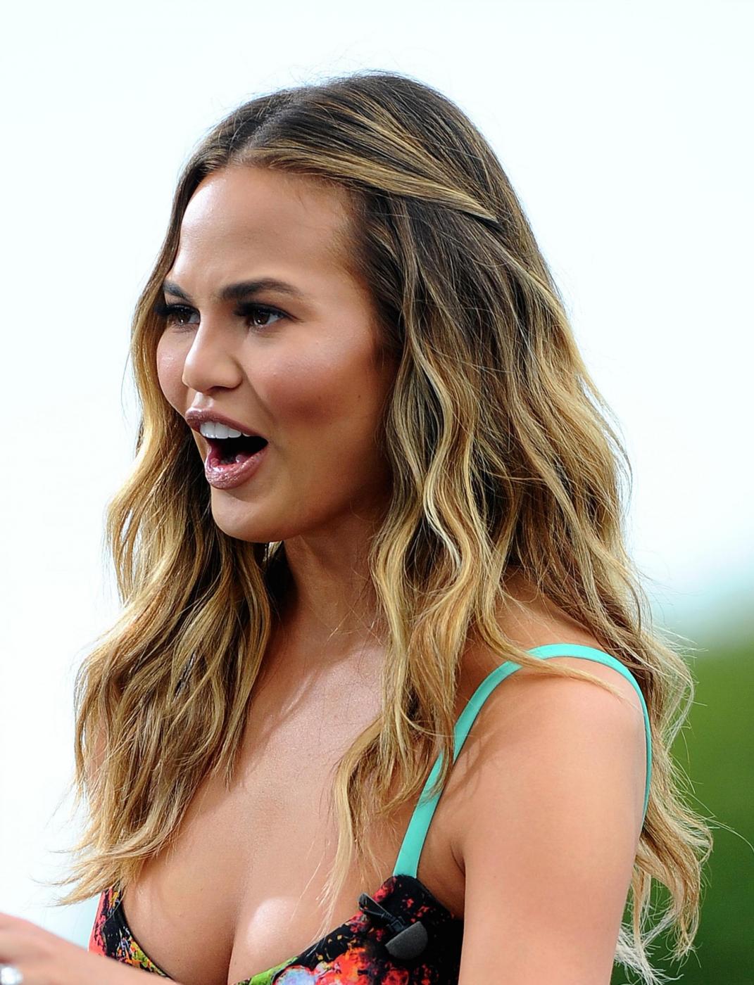 Los AngelesLuglio 2014Chrissy Teigen modella di Sport Illustrated sul set di Extra tvJobID: 071614R1July 16th, 2014 Universal City, CANpg/LaPresseOnly Italy