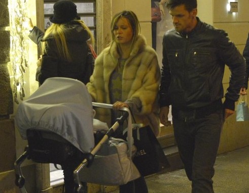 ROMA – Il difensore e centrocampista del Napoli e della Nazionale italiana Christian Maggio, è stato paparazzato insieme alla moglie Valeria Bigella e al figlio neonato mentre fa shopping a via del Babuino a Roma.