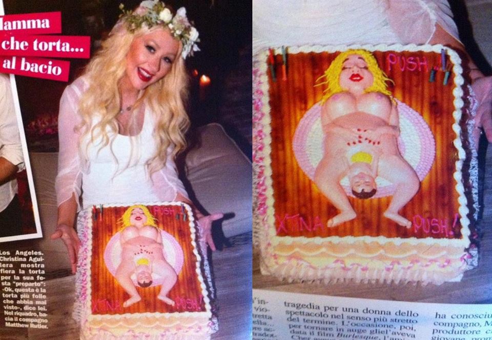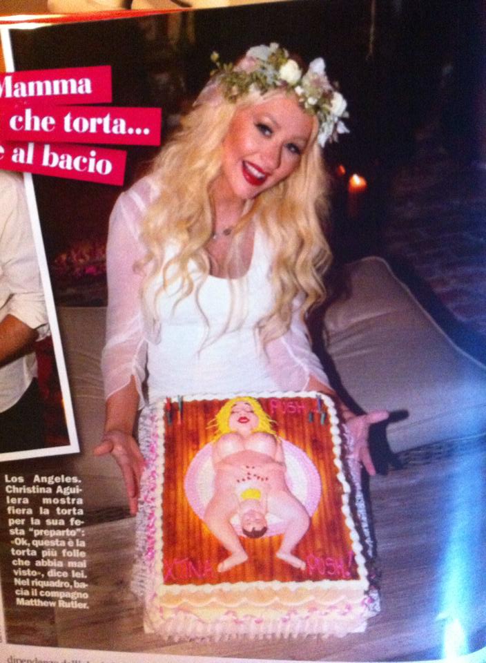 USA – Christina Aguilera ha organizzato un party a pochi giorni dalla nascita di sua figlia. Per l’occasione la cantante ha scelto una torta decisamente trash: è decorata con una donna che sta per partorire. Non solo: si vede anche il bebè che sta per uscire dalla vagina della donna. Insomma, neanche il “boss delle torte” sarebbe mai arrivato a questo punto. “Ok, questa è la torta più folle che abbia mai visto”, dice lei. In effetti, come darle torto? Quello di Cristina è stato il classico “baby shower”, ovvero un party fra amici che si organizza a pochi giorni dal parto.