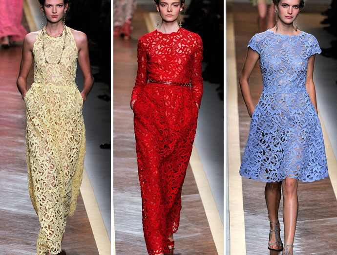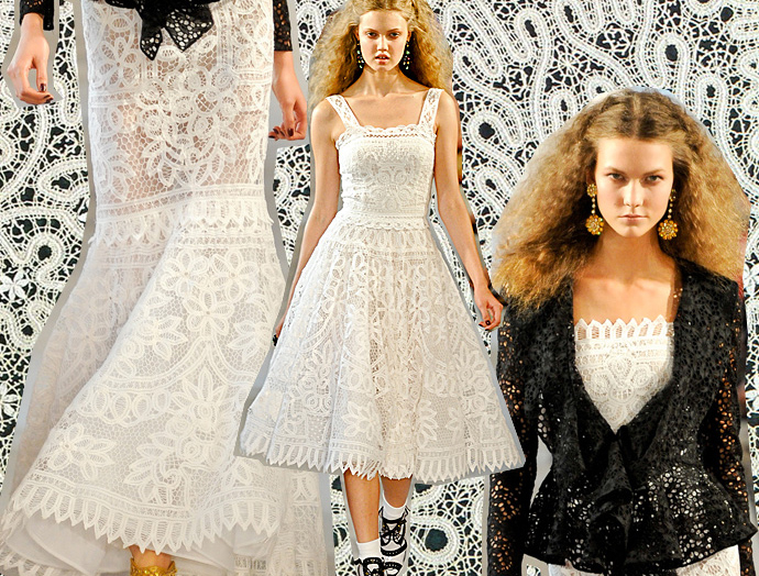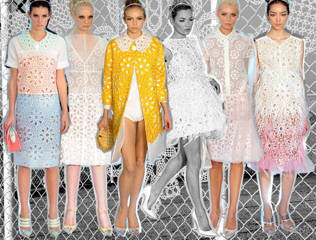 MILANO – La quantità di pizzo utilizzata nelle collezioni primavera-estate di quest’anno avrà fatto sicuramente la gioia di tutti i produttori di questo materiale. Sono infatti molti i designer che hanno portato sulle passerelle modelle con abiti di pizzo in diverse forme, colori e dimensioni e fra questi nomi importanti come Dolce & Gabbana, Giambattista Valli, Louis Vuitton, Miu Miu, Oscar de la Renta, Preen, Marni e Valentino.