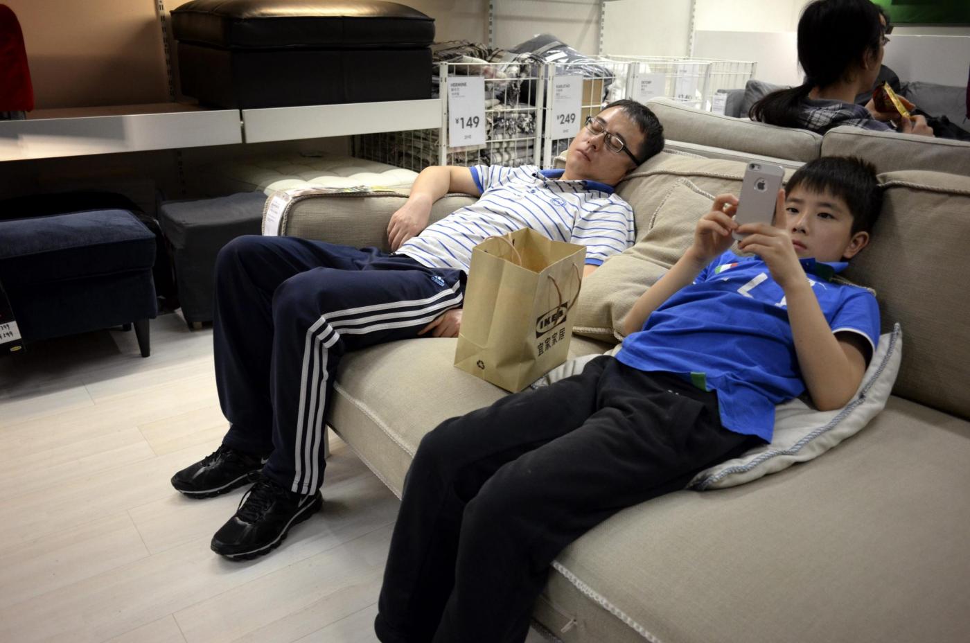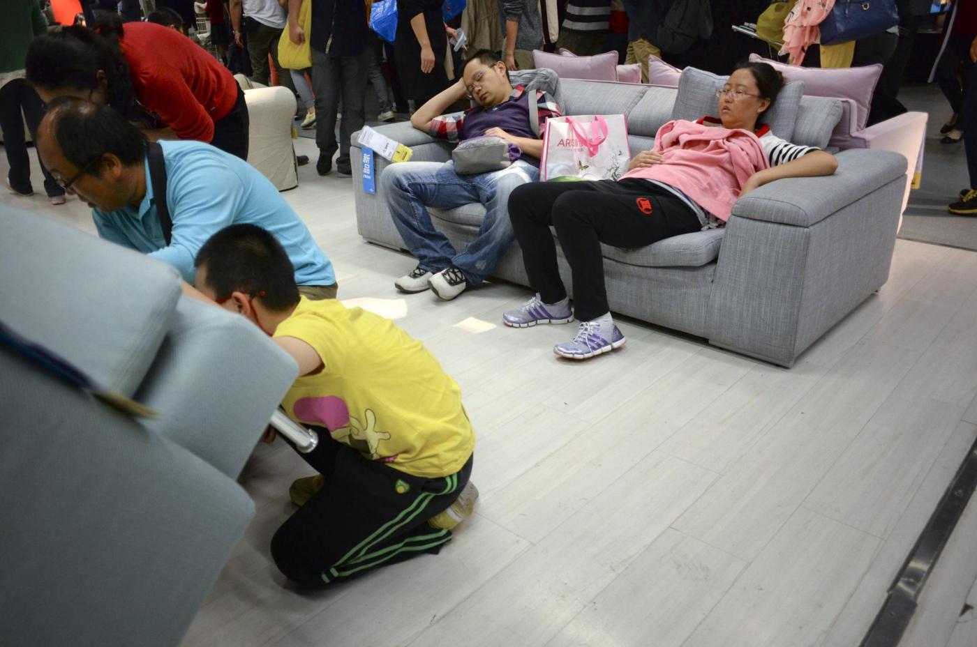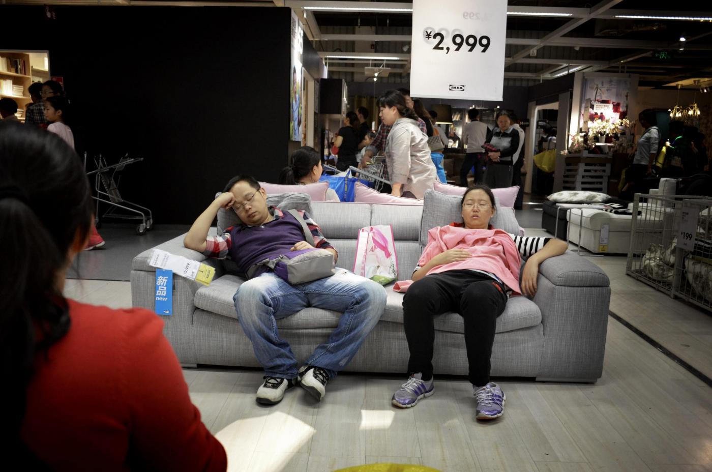 Customers at an IKEA furniture store in China September, 2013. Customers falling asleep in the beds and sofas of IKEA are not unusual in China. But thats not a problem according to the IKEA management -We welcome all who want to come to our stores. All our visitors are potential customers, said Linda Xu, public relations for the the Ikea grouo in China, according to Swediosh newspaper DN, quting Le Figaro. Since Ikea established itself in China 15 years ago, the country has become one of their most important markets. ph. Jonas Lindkvist / DN / TT / Kod: 3507 / Scanpix LaPresse -- Only Italy