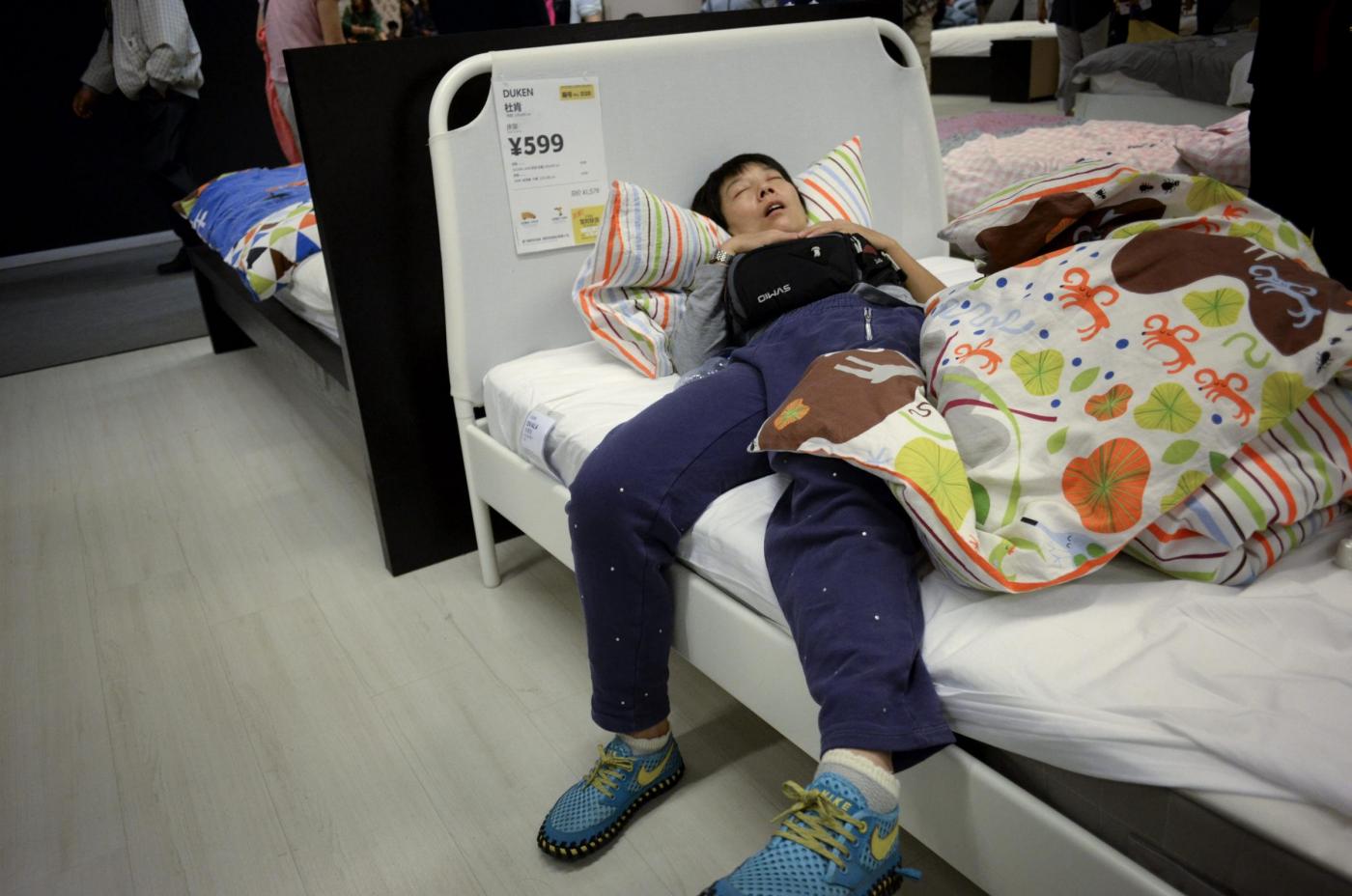 PECHINO – Ai manager del negozio di Ikea di Pechino, il fatto che diversi clienti si riposino schiacciando un pisolino sui letti esposti, non è un problema. Nella frenetica Cina moderna infatti, ogni occasione di svago è buona per recuperare un po’ di sonno: e così, da ormai diversi mesi (queste foto sono state scattate nel settembre 2013) capita di vedere gente che dorme sui letti esposti nella sede locale del supermercato dei mobili a basso prezzo. Per stare più comodo, c’è chi addirittura si toglie le scarpe.