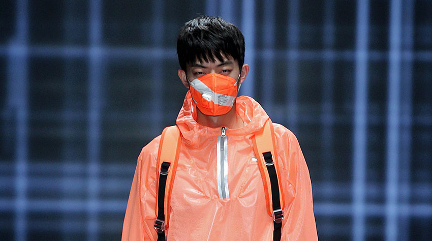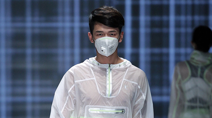 Il designer Qiaodan Yin Peng, durante la Mercedes-Benz China Fashion Week, ha presentato una linea di abbigliamento sportivo per uomini e donne, che offre una gamma di mascherine anti-inquinamento.
