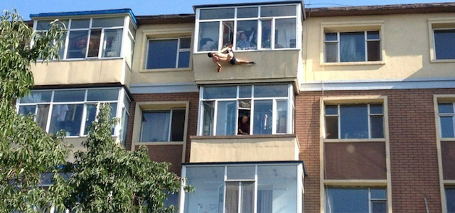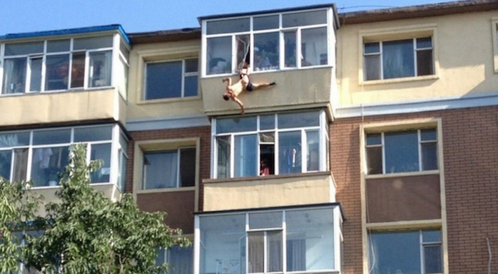 PECHINO (CINA) – Una moglie ha preso per le mutande suo marito dopo che si era buttato dalla finestra del loro appartamento al sesto piano di una palazzina a Changchung, nel nord-est della Cina.