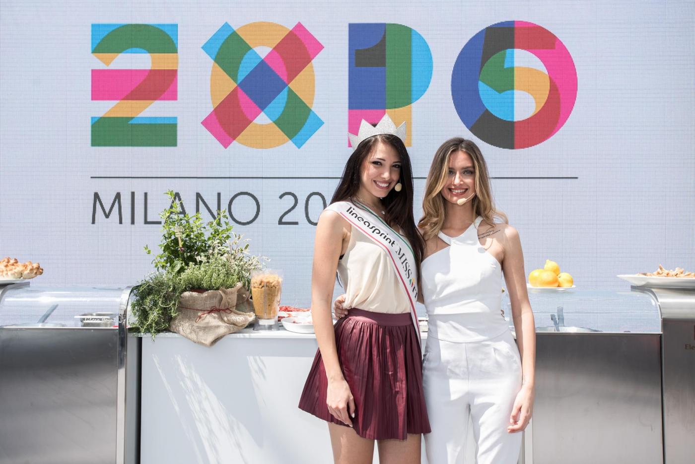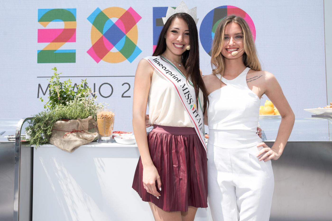 Foto Piero Cruciatti / LaPresse 18-05-2015 Milano, Italia Spettacolo Showcooking con le due Miss Italia, Clarissa Marchese e Giulia Arena a Expo 2015 Nella Foto: Miss Italia Clarissa Marchese e Giulia Arena Photo Piero Cruciatti / LaPresse 18-05-2015 Milan, Italy Entertainment Showcooking with Miss Italia, Clarissa Marchese and Giulia Arena at Expo 2015 In the Photo: Miss Italia, Clarissa Marchese and Giulia Arena