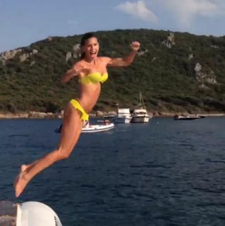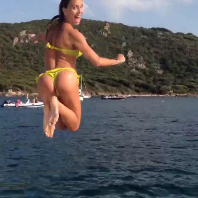 La bella Claudia che sta trascorrendo con il suo compagno Arnaud Mimran e la sua famiglia le vacanze in Corsica a bordo di una barca, ha infatti postato sul suo account Instagram un video che la riprende mentre si tuffa. Durante la risalita in barca però, la bella Claudia perde la parte superiore del bikini giallo che indossa esibendosi in un “Fuori di seno”.