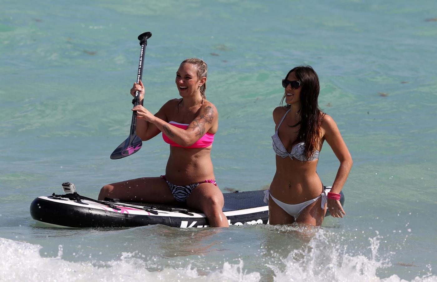 MIAMI – Le due super modelle Claudia Romani e Stine Kronborg si divertono un sacco a Miami Beach in mezzo alle onde.