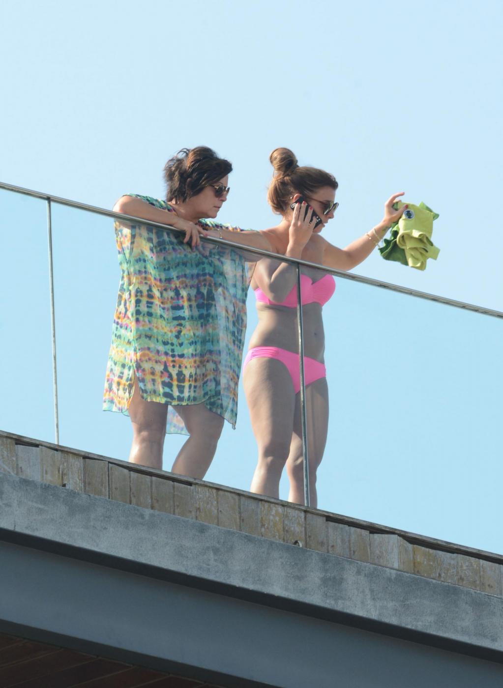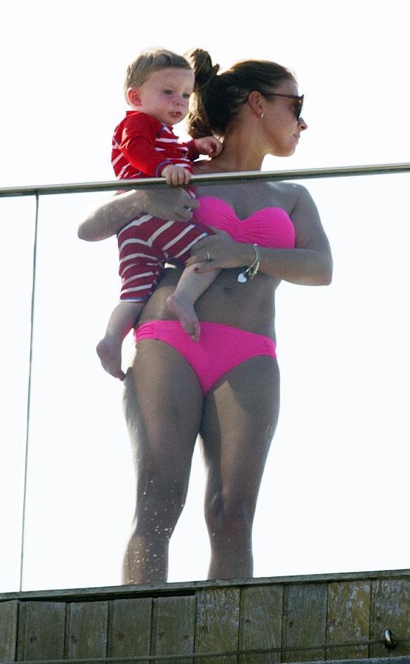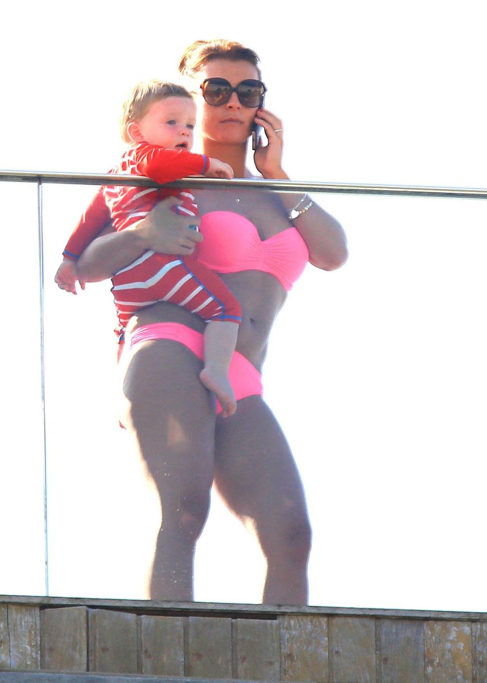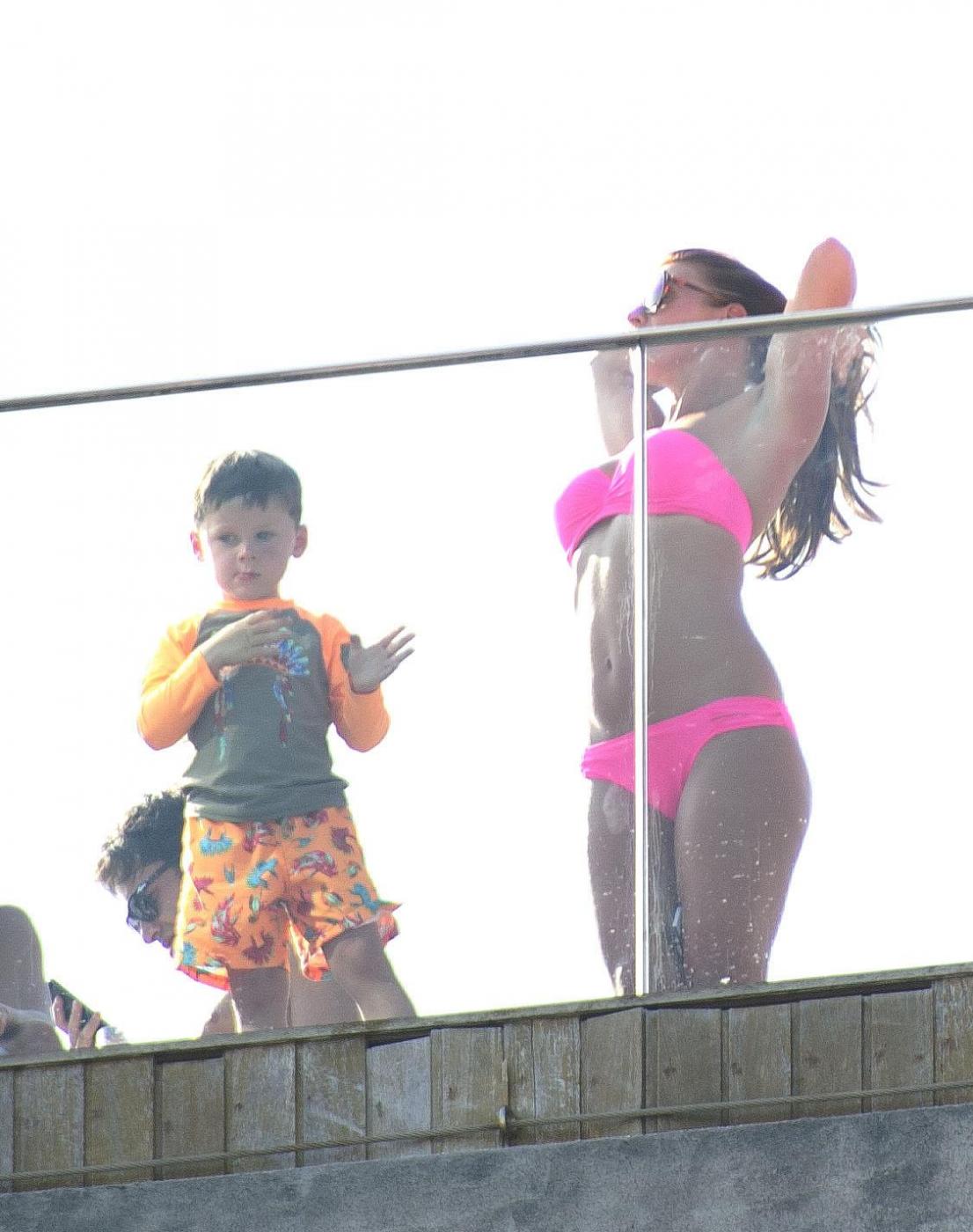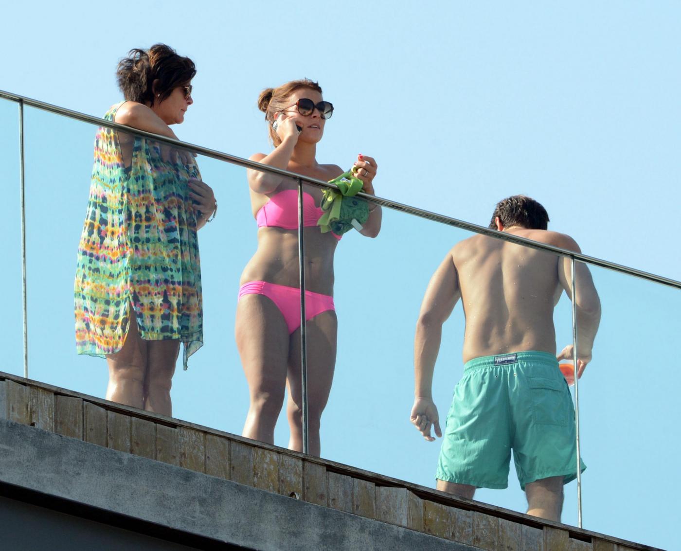Valigie a parte, la wags numero uno dell’Inghilterra fa subito parlare di sè e in alcune foto pubblicate da LaPresse appare con un sexy costume rosa in un balcone di un hotel di Rio, la città brasiliane in cui è sbarcata dopo un viaggio di 11 ore. Con lei ci sono i genitori Tony e Colette e soprattutto i figli Kai e Klay, entrambi con addosso la maglia rossa numero 10 di papà.