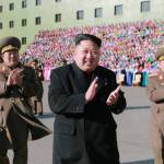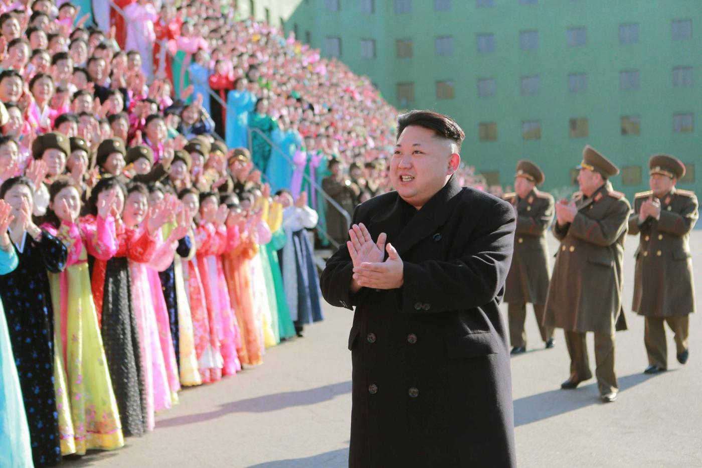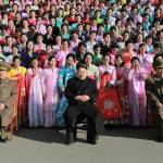Il leader della Corea del Nord Kim Jong-un circondato da donne nel tradizionale meeting che viene organizzato ogni anno in Corea del Nord per celebrare le famiglie dei militari dell’Esercito.