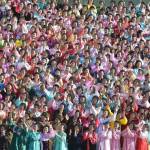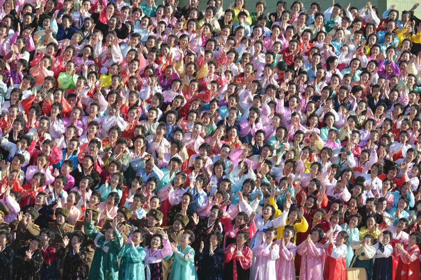 Il leader che recentemente ha vietato a tutti i cittadini di chiamarsi come lui invitando a cambiarlo “volontariamente” nei casi di omonimia, nelle foto in cui viene ritratto accanto a centinaia di donne appare sorridente. Mentre lui sorride, le donne invitate alla cerimonia si commuovono (foto LaPresse).