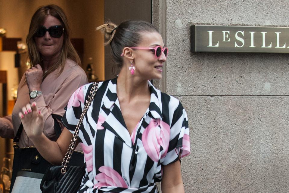 L'ex Miss Italia incontra e saluta l'amica Nina SenicarCristina Chiabotto, shopping a Milano con il vestito "juventino