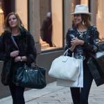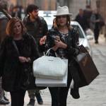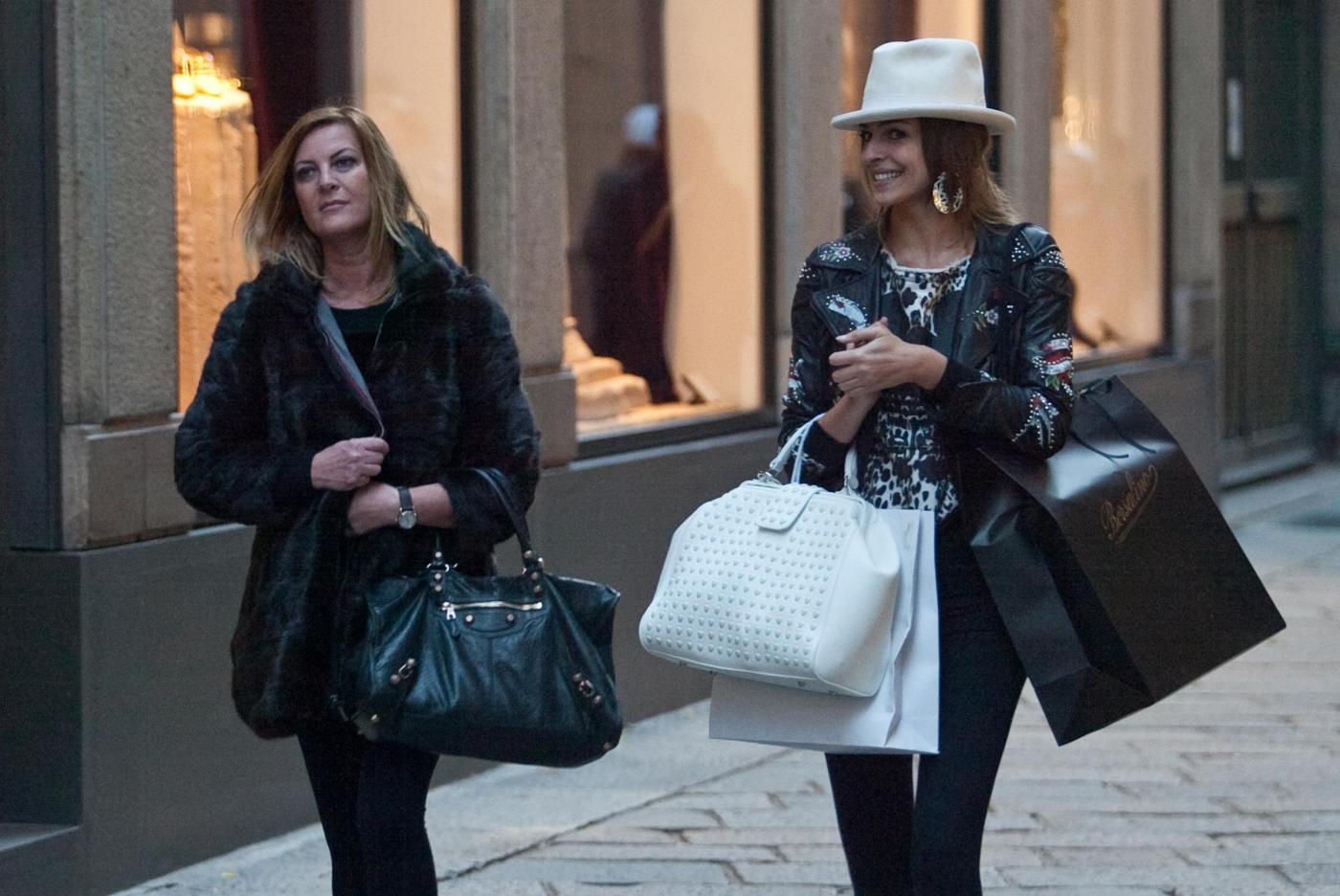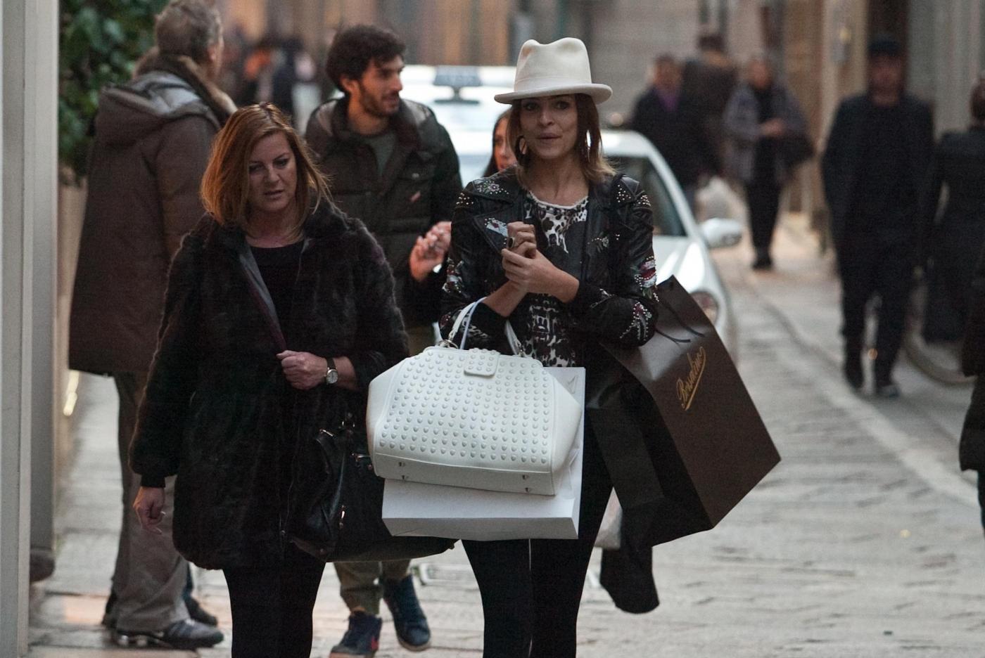 La bella show girl, volto di Jtv, il canale tv della Juventus, a giudicare dalle shopper che ha in mano, nel momento in cui viene paparazzata di acquisti ne ha già fatti parecchi (foto LaPresse)