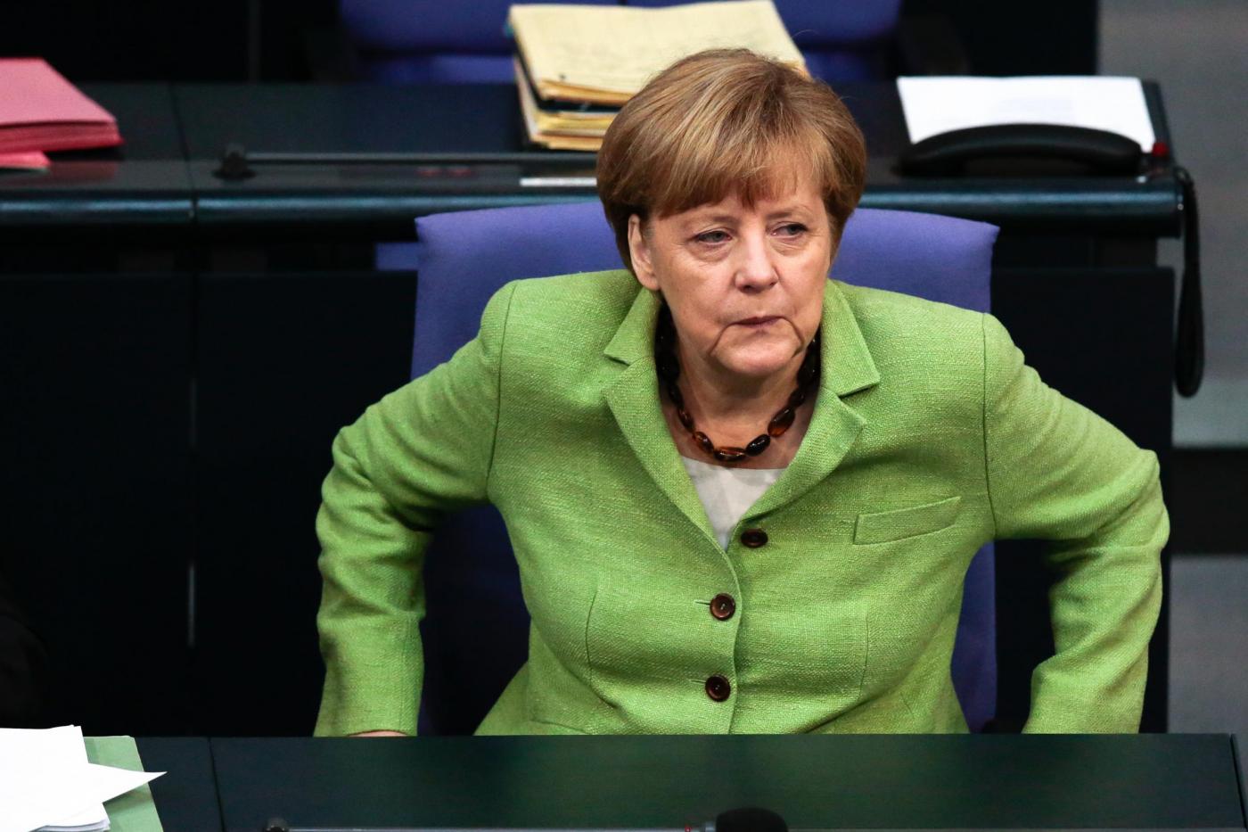 German Chancellor Angela Merkel attends a debate at the german parliament Bundestag in Berlin, Tuesday, June 24, 2014. The parliament discusses the budget for 2014 . (AP Photo/Markus Schreiber)