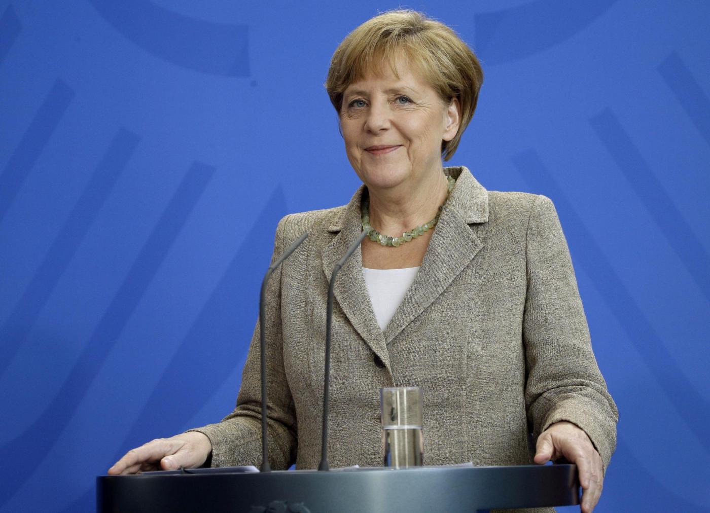 German Chancellor Angela Merkel smiles during a joint news conference with the Prime Minster of Moldova Iurie Leanca as part of a meeting at the chancellery in Berlin, Germany, Thursday, July 10, 2014. (AP Photo/Michael Sohn)