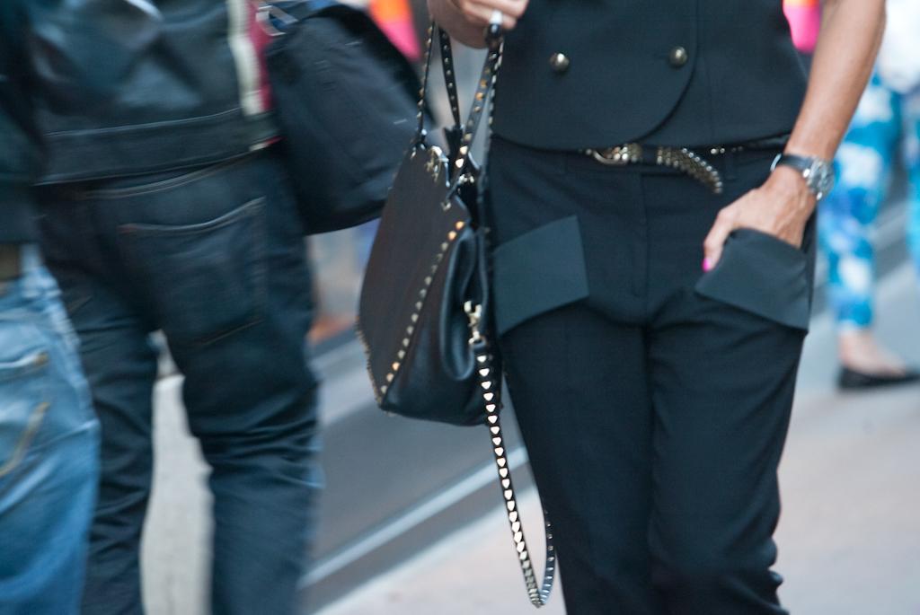 La borsa di Cristina è di pelle borchiata, l’orologio maschile, la cintura metallizzata e l’anello maxi: anche gli accessori della conduttrice, come spesso accade alla Parodi quando viene fotografata fuori dagli studi televisivi, sono curati nel dettaglio (foto LaPresse)