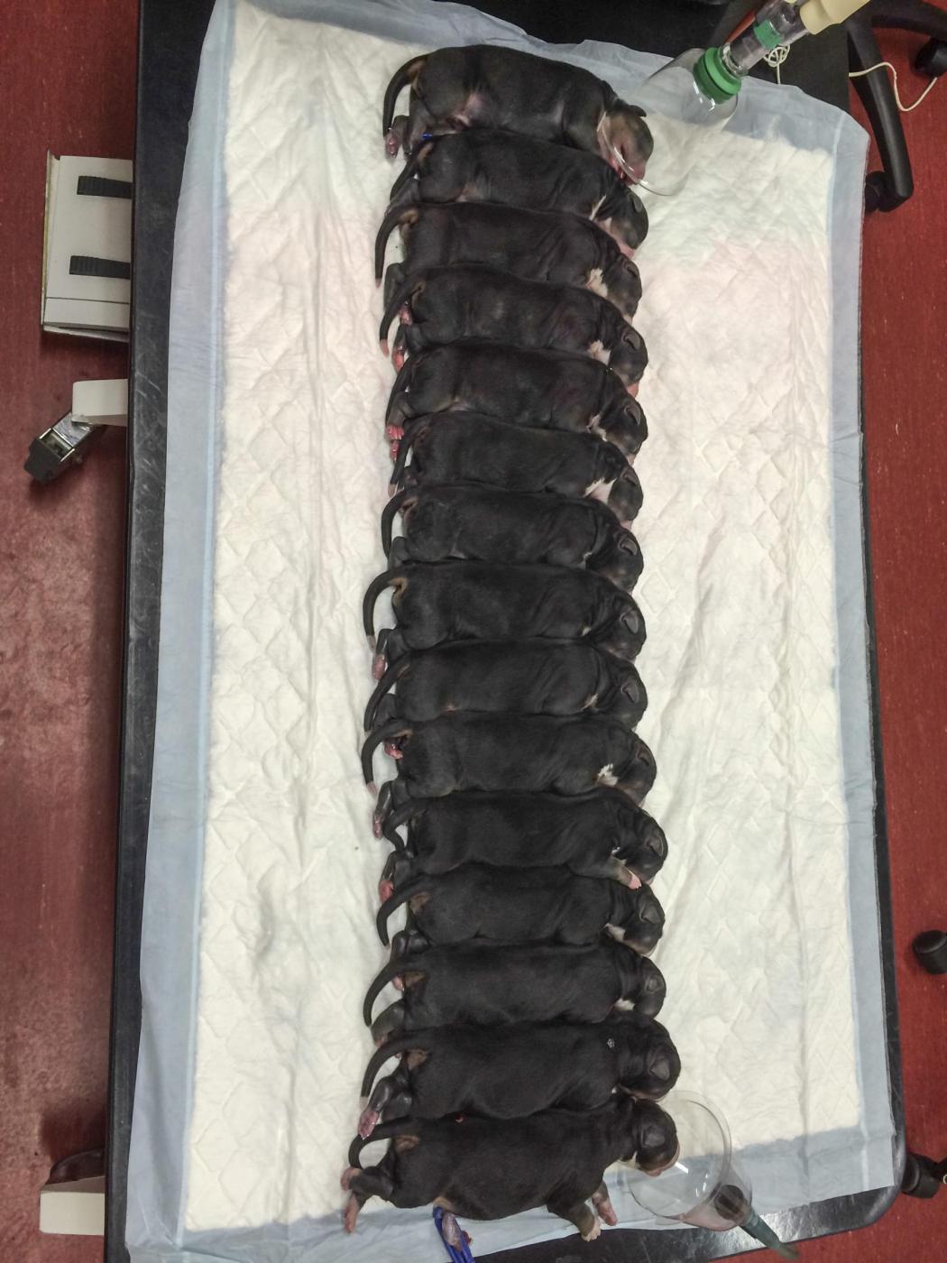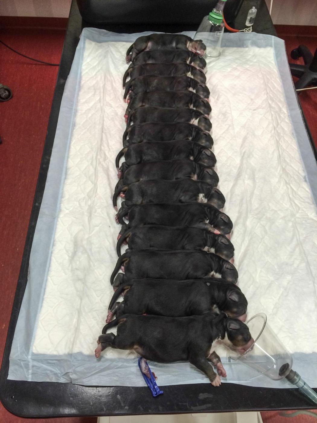 HUDIKSVALL (SVEZIA) – In un ospedale veterinario di Hudiksvall in Svezia, sono nati con il cesareo 16 cuccioli di cane.
